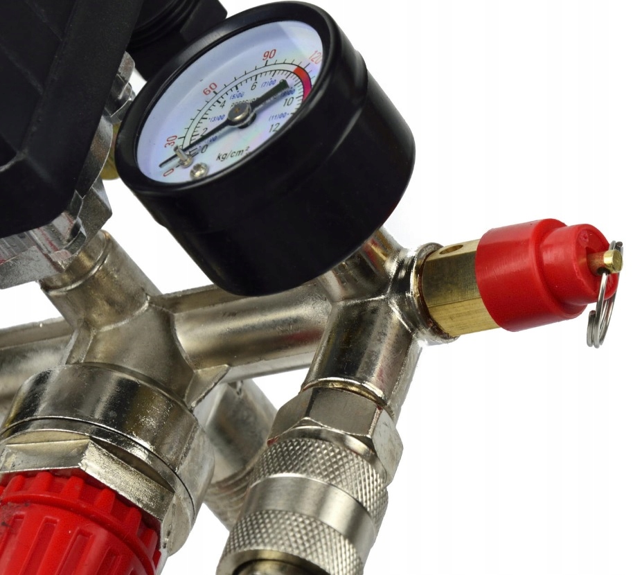 Wyłącznik ciśnieniowy (presostat) z kolektorem, dwoma szybkozłączkami i manometrami przeznaczony do kompresorów ciśnieniowych na 230V. Presostat wykorzystywany jest głównie w kompresorach o pojemności 24l, 50l, 60l, 100l, 150l.