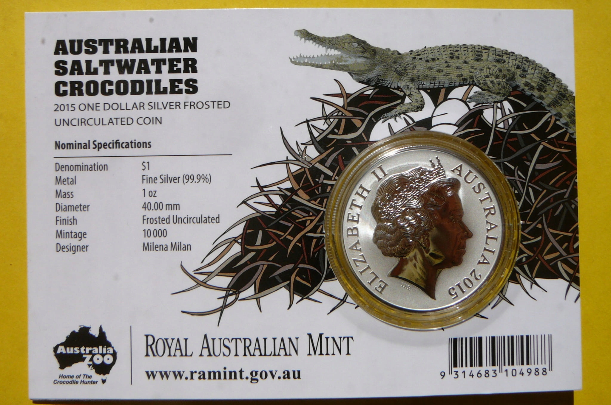 НА АУКЦИОНЕ ВЫСТАВЛЕНА ВЕЛИКОЛЕПНАЯ ОРИГИНАЛЬНАЯ СЕРЕБРЯНАЯ КОЛЛЕКЦИОННАЯ МОНЕТА-DOLLAR - AUSTRALIA 2015 - AGRO JUNIOR - KROKODYL SŁONOWODNY / AUSTRALIAN SALTWATER CROCODILES AGRO JUNIOR-ЧИСТОЕ СЕРЕБРО 999 УНЦИЙ-ОГРАНИЧЕННОЕ ИЗДАНИЕ-РЕДКИЙ-РЕДКИЙ-ТИРАЖ ВСЕГО 10000 ШТУК !! СЕРТИФИКАТ ПОДЛИННОСТИ-ВЫДАННЫЙ КОРОЛЕВСКИМ МОНЕТНЫМ ДВОРОМ АВСТРАЛИИ - НА ДРУГИХ АУКЦИОНАХ МОНЕТЫ ЭТОЙ СЕРИИ-НЕ СТЕСНЯЙТЕСЬ СМОТРЕТЬ