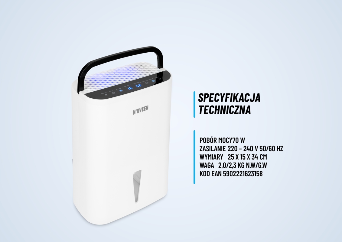 Temperatura – na bieżąco informuje o temperaturze jaka panuje w pomieszczeniu, w którym jest osuszacz.