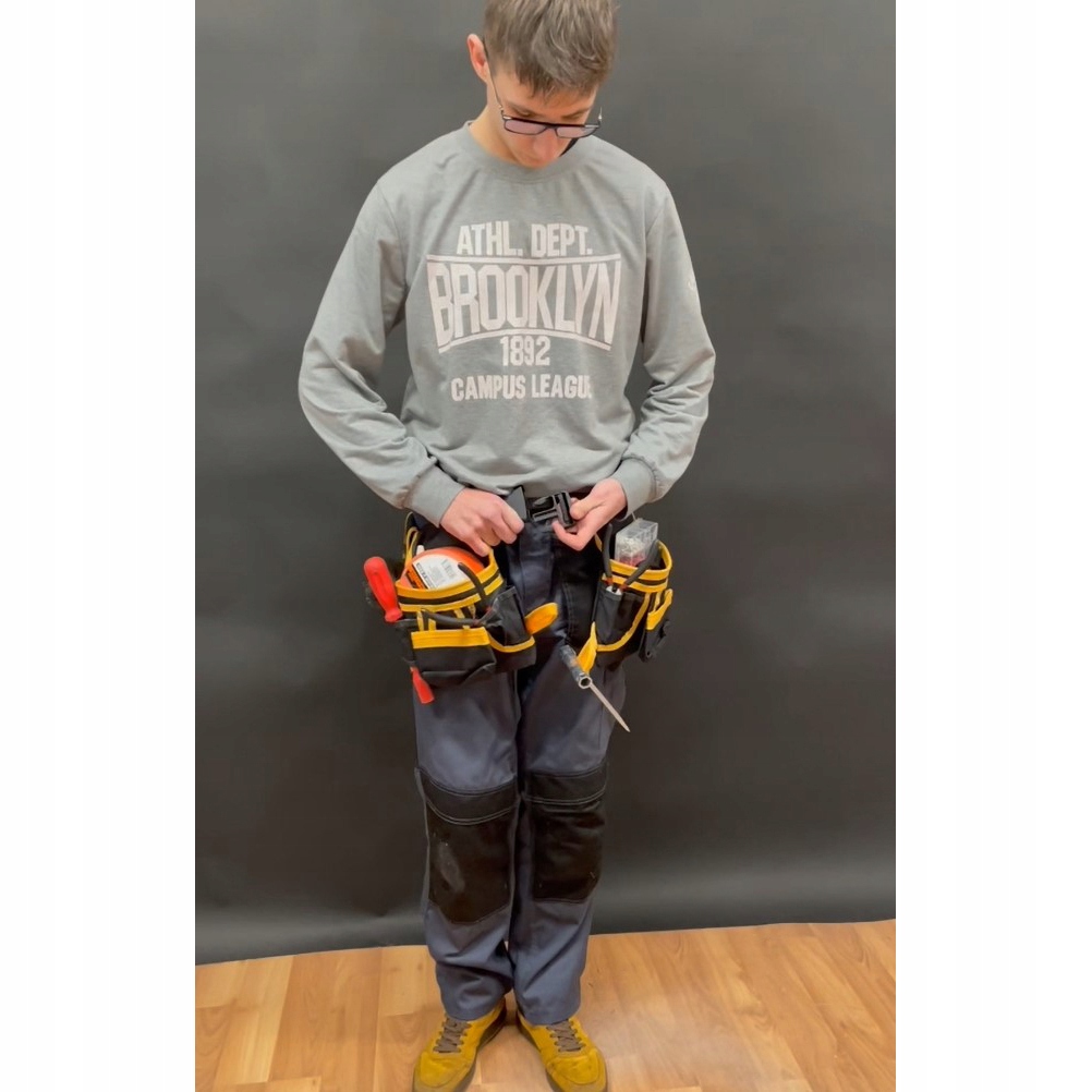 Umiejscowienie narzędzi na pasie równomiernie rozkłada ciężar, co zmniejsza obciążenie kręgosłupa i innych części ciała. Pomaga to w zapobieganiu kontuzjom i bólom związanym z noszeniem ciężkich narzędzi.