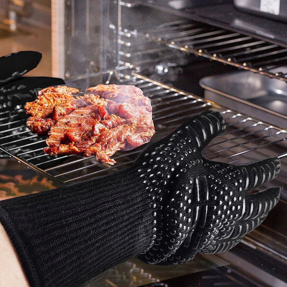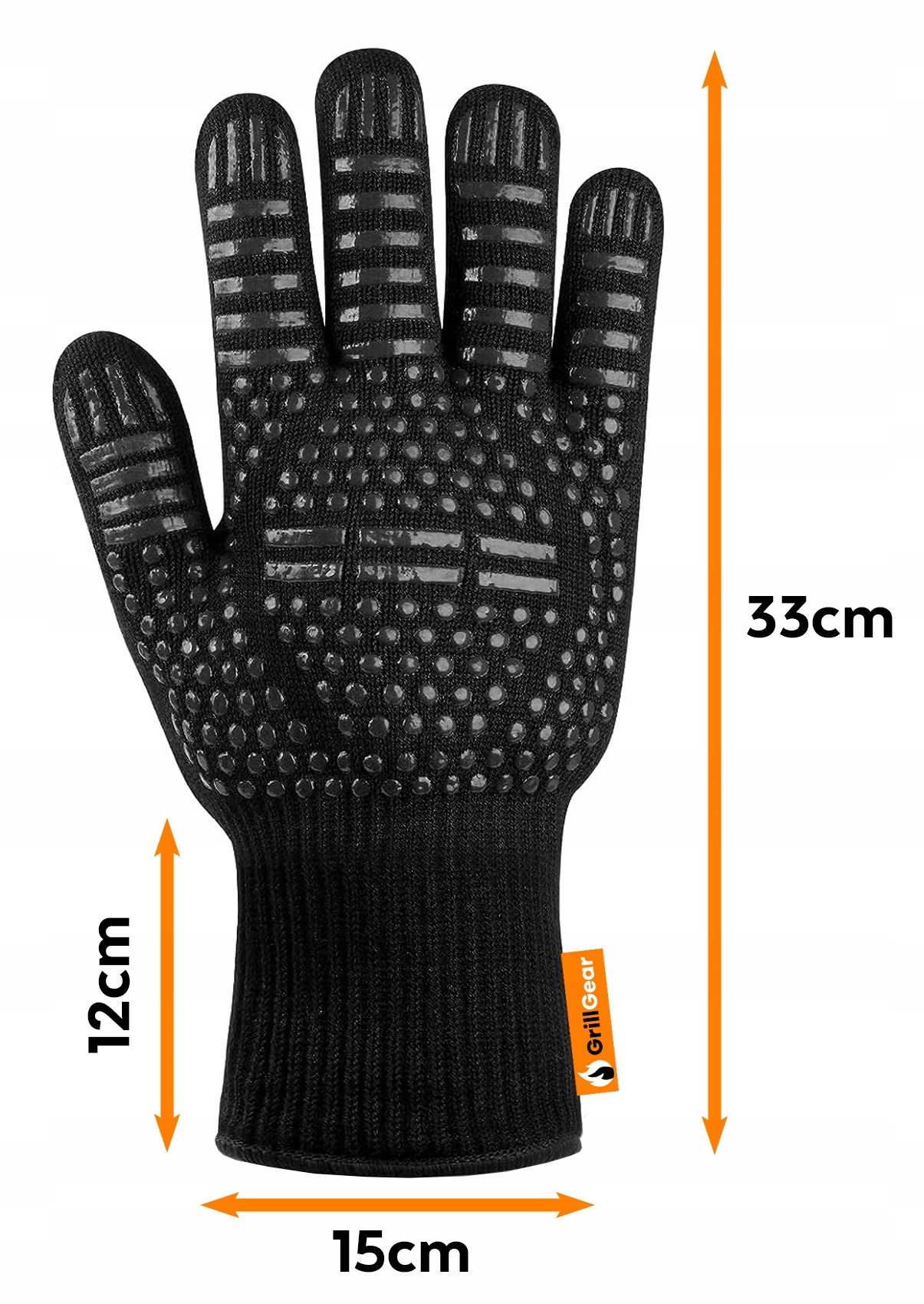 Nowa, żaroodporna rękawica marki GrillGear do smażenia na grillu, ognisku, wyciągania gorących naczyń z piekarnika, mikrofalówki itp. Chroni Twoje dłonie przed skutkami wysokich i niskich temperatur. Wykonana z wysokiej jakości materiałów, które zapewniają ochronę przed wysoką temperaturą do 800 stopni Celsjusza. Pozwala to dotykać nawet najbardziej gorących powierzchni grilla i przewracać jedzenie bez ryzyka poparzenia. Świetnie nadaje się także do dokładania drewna do kominka lub ogniska.