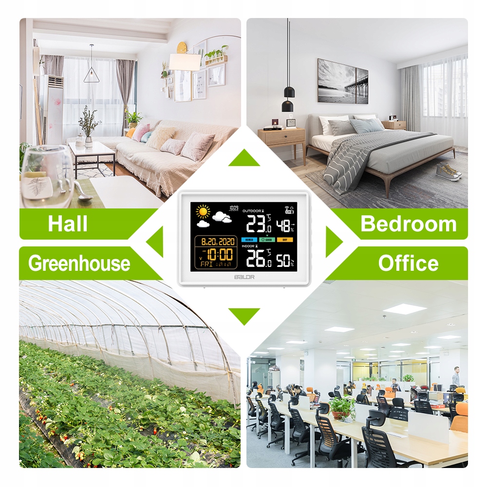 Duży bezprzewodowy termometr wewnętrzny z czujnikiem zewnętrznym wyświetla prognozę pogody, która jest w stanie przewidzieć warunki pogodowe za pomocą ciśnienia barometrycznego z 12-24 godzinnym wyprzedzeniem, a następnie wyświetlić prognozę pogody za pomocą 5 ikon (słonecznie, częściowo pochmurno, pochmurno, deszcz i śnieg).