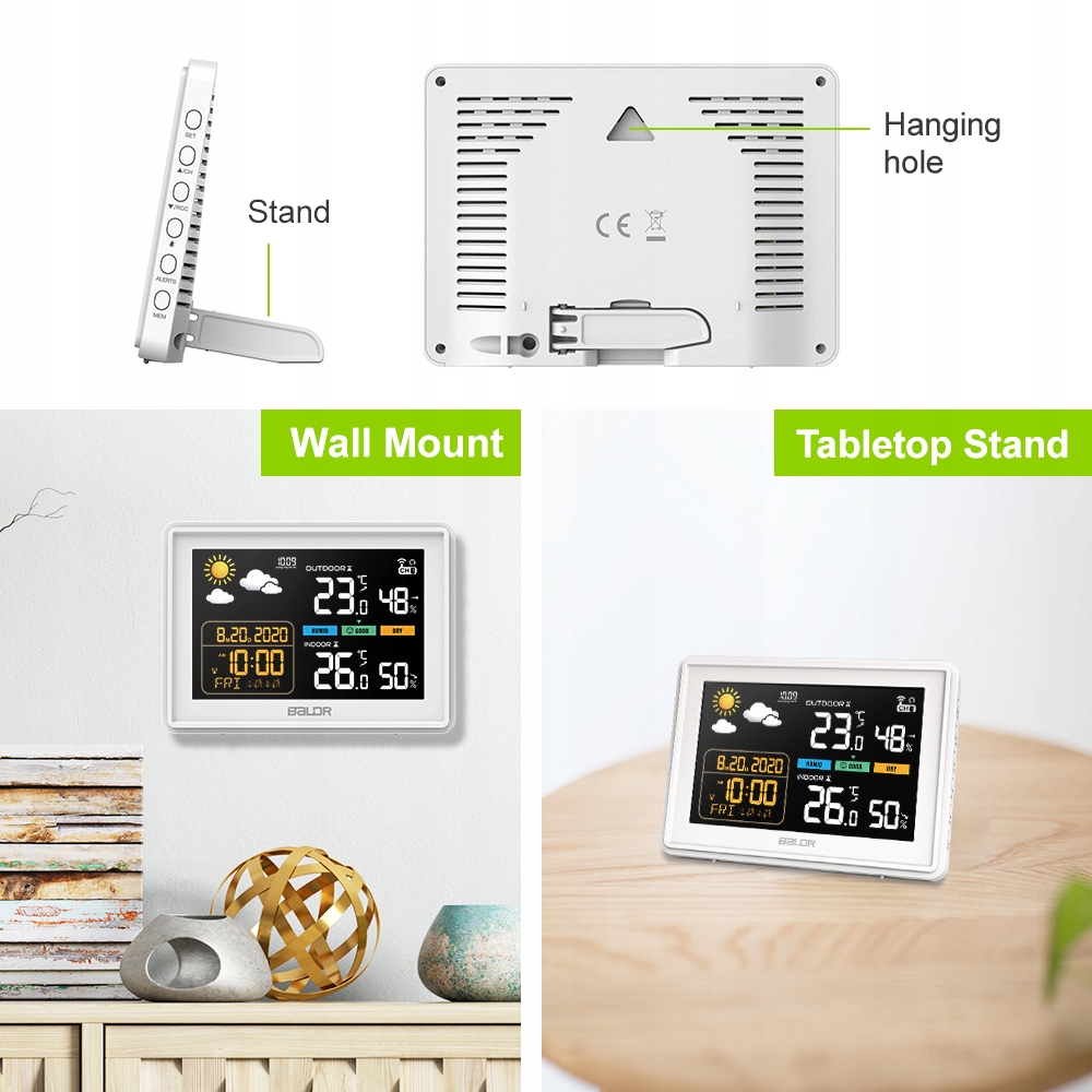 Urządzenie cechuje się eleganckim i minimalistycznym wyglądem dzięki czemu wpasuje się zarówno w sypialni, salonie, kuchni jak i biurze. Urządzenie występuje z obudową w 2 wersjach kolorystycznych: czarnej i białej, co pozwoli dopasować wybór do własnych preferencji. Dzięki dużemu, czytelnemu wyświetlaczowi i 5 różnym ikonom pogodowym odczyt pogody jest niezwykle łatwy.