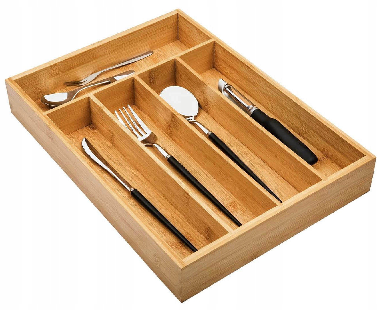 Organizer na sztućce GAEL to wyjątkowy organizer, który nie tylko pozwoli zachować ład i porządek w Twojej kuchennej czy biurowej szufladzie, ale także dodaje przyjemny akcent naturalnego piękna. Organizer GAEL został stworzony z myślą o funkcjonalności oraz świadomym podejściu do ochrony środowiska. Wykonany z naturalnego bambusa, trwałego i ekologicznego materiału, ten organizer nie tylko zyskuje punkty za swoją estetykę, ale także za dbałość o planetę. Jego inteligentny podział na 5 przegródek to klucz do efektywnego rozmieszczenia różnorodnych sztućców. Bez trudu przechowasz widelce, noże, łyżki i inne akcesoria, utrzymując przy tym porządek i ułatwiając dostęp do nich w każdym momencie. Ostatecznie, nie musisz się już martwić o chaos czy nieporządek w szufladzie. Dzięki optymalnym i kompaktowym wymiarom organizer będzie pasował do większości standardowych szuflad.
