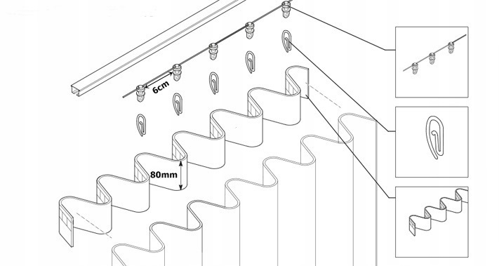 ✔️ Mocowanie firan i zasłon – Idealne do tworzenia równych, eleganckich fal na zasłonach i firanach.