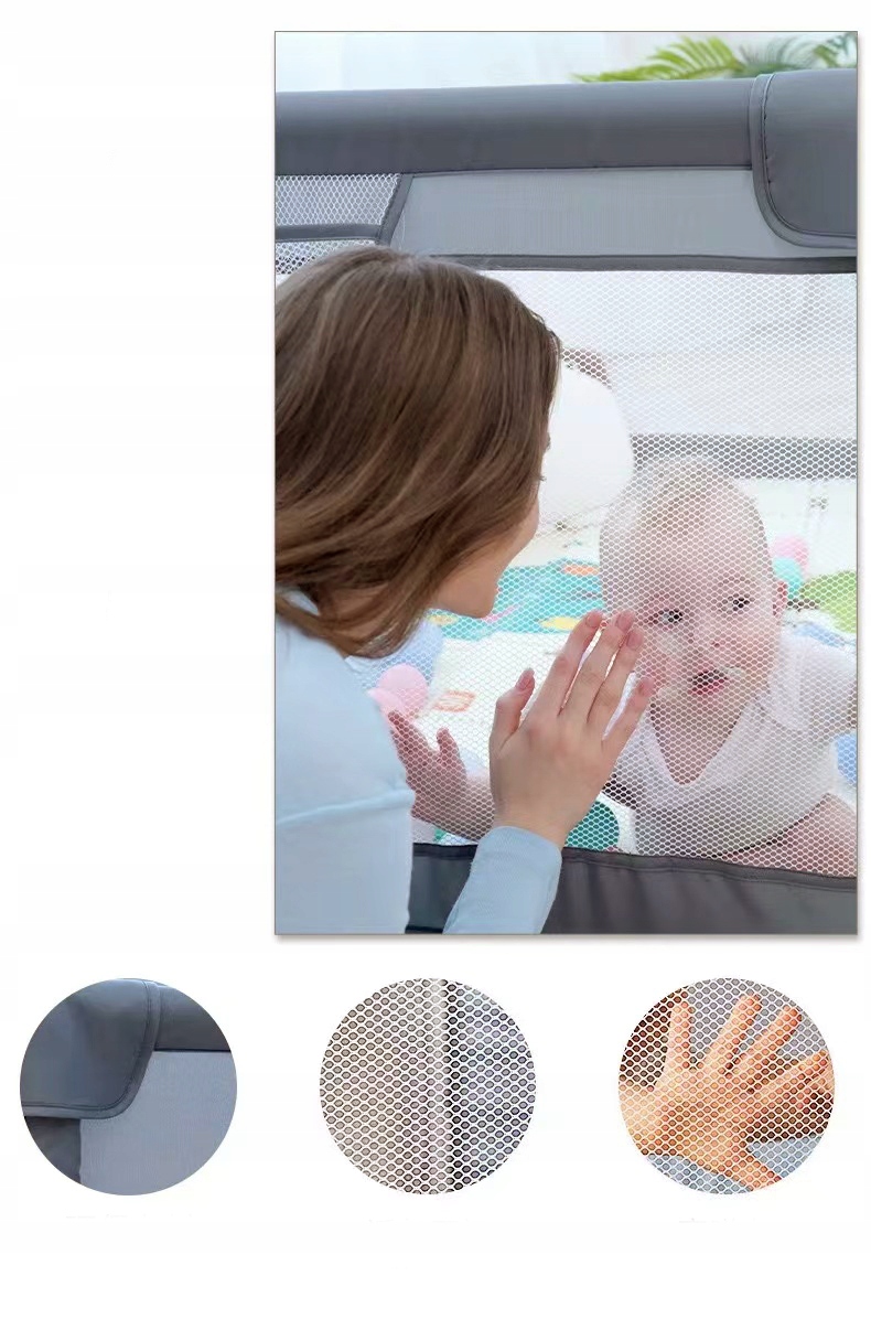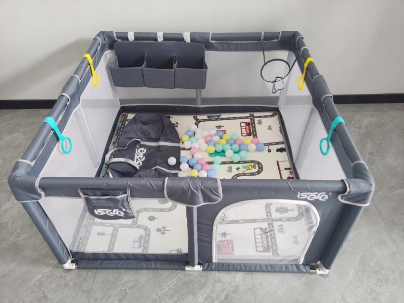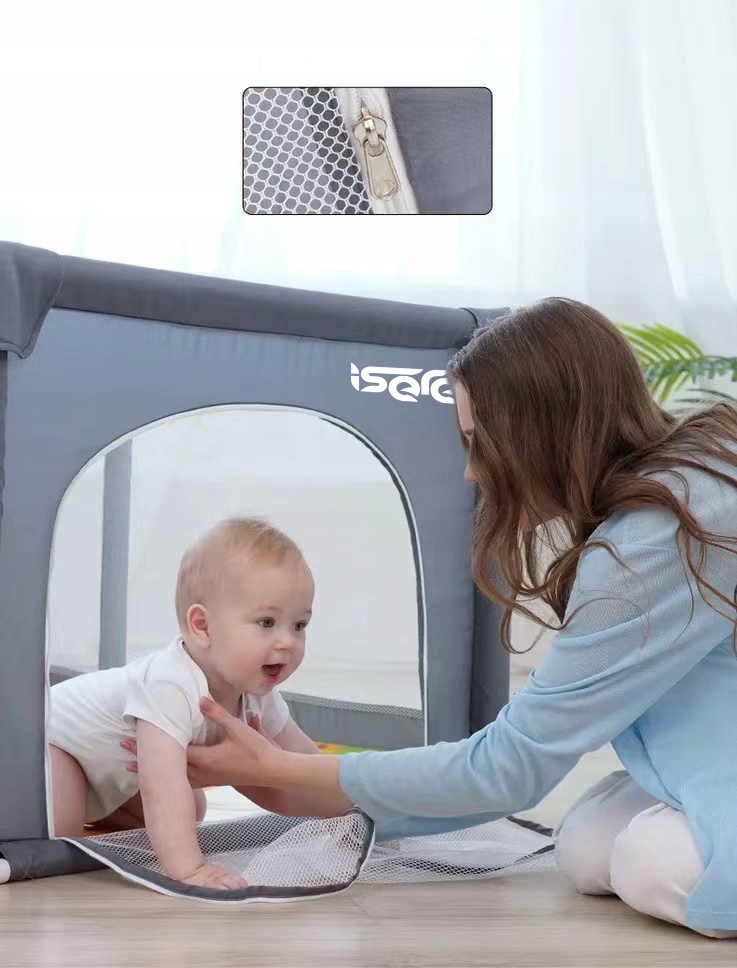 Kojec posiada wygodny zamek błyskawiczny dzięki czemu możemy zdecydować czy pozostawiamy otwartą przestrzeń dla naszego malucha który może dowolnie wchodzić i wychodzić z kojca. Możemy też zamknąć drzwi dla bezpieczeństwa by nasze dziecko spokojnie bawiło się w kojcu bez obaw że z niego ucieknie.