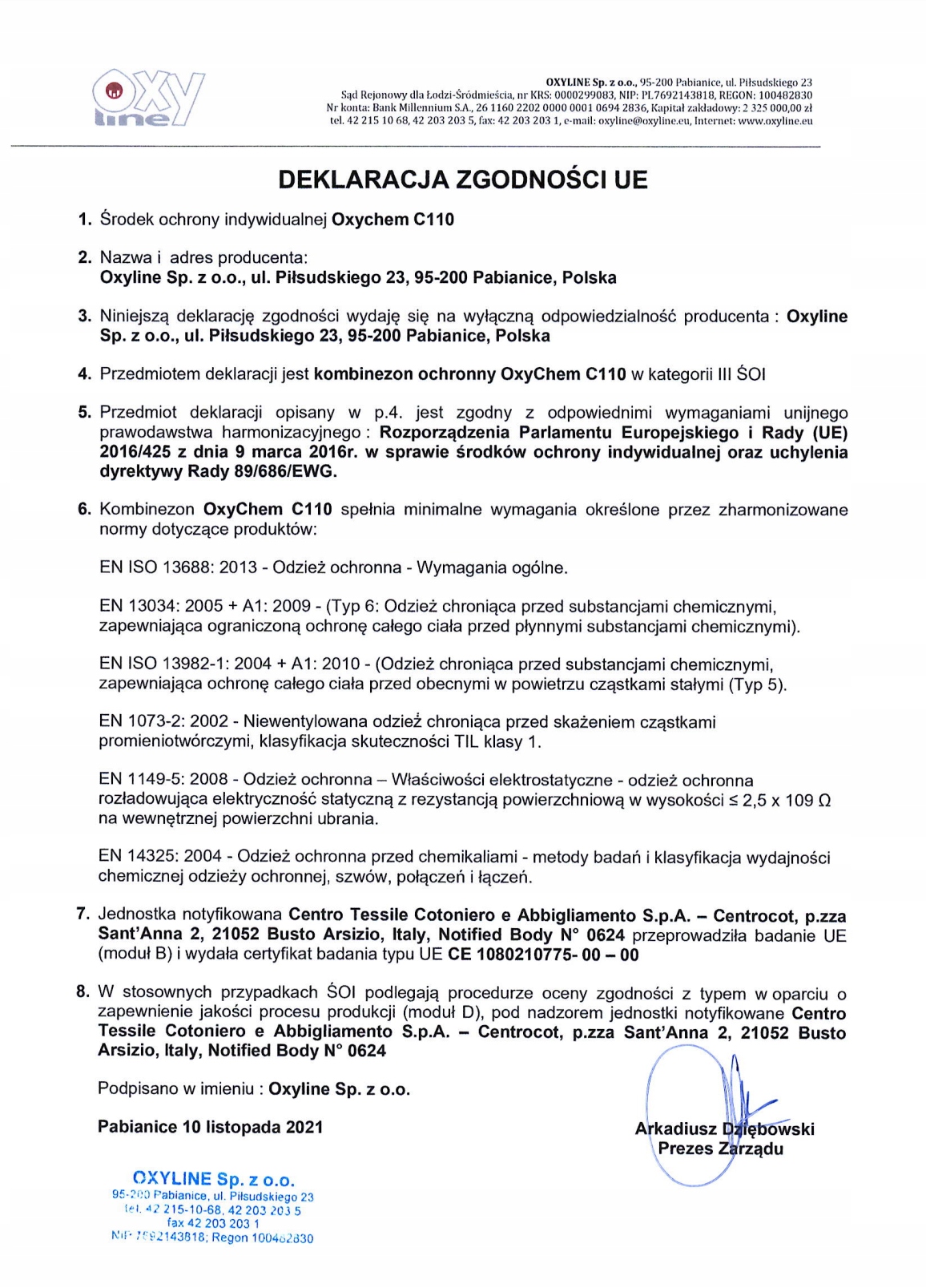 ✔️ Kombinezon OxyChem C110B zapewnia ograniczoną ochronę przeciwchemiczną typu 5/6.