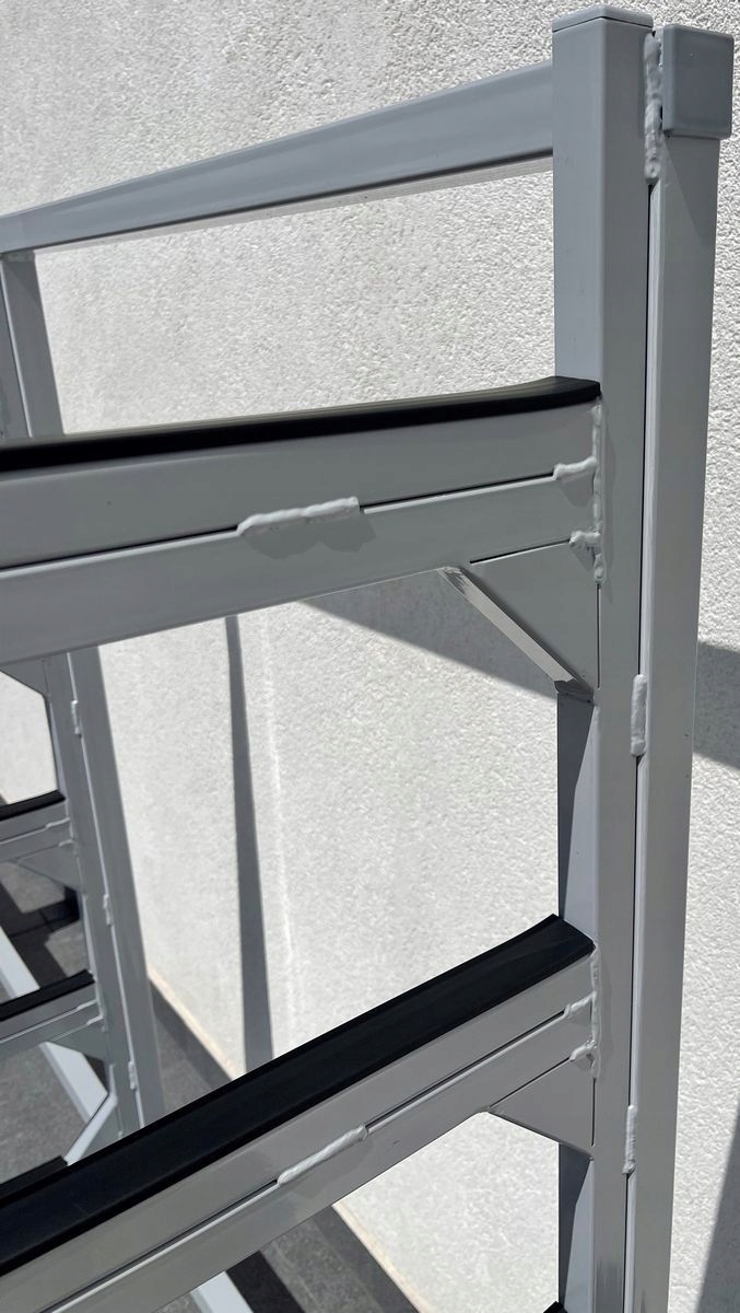 - 5 poziomych półek zabezpieczonych dodatkowo profilem gumowym,