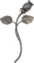 Stalowy element kuty - kwiat róży. Wykorzystywany jest najczęściej jako element dekoracyjny przy tworzeniu bram, ogrodzeń, furtek czy balustrad. Może być również pomocny w ozdabianiu wnętrz i w projektowaniu architektury ogrodowej. Produkt w stanie surowym, do wykończenia we własnym zakresie.