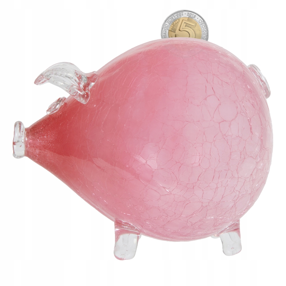 Duża, szklana świnka skarbonka. Wykonana w całości z różowego, przezroczystego szkła. Dzięki czemu poza funkcjonalnością, stanowi wyjątkowy element dekoracji każdego wnętrza. Świnki posiadają otwór na grzbiecie do wrzucania pieniędzy. Natomiast jedynym sposobem na ich wyciągnięcie, to jej rozbicie, co zdecydowanie każdemu ułatwi oszczędzanie
