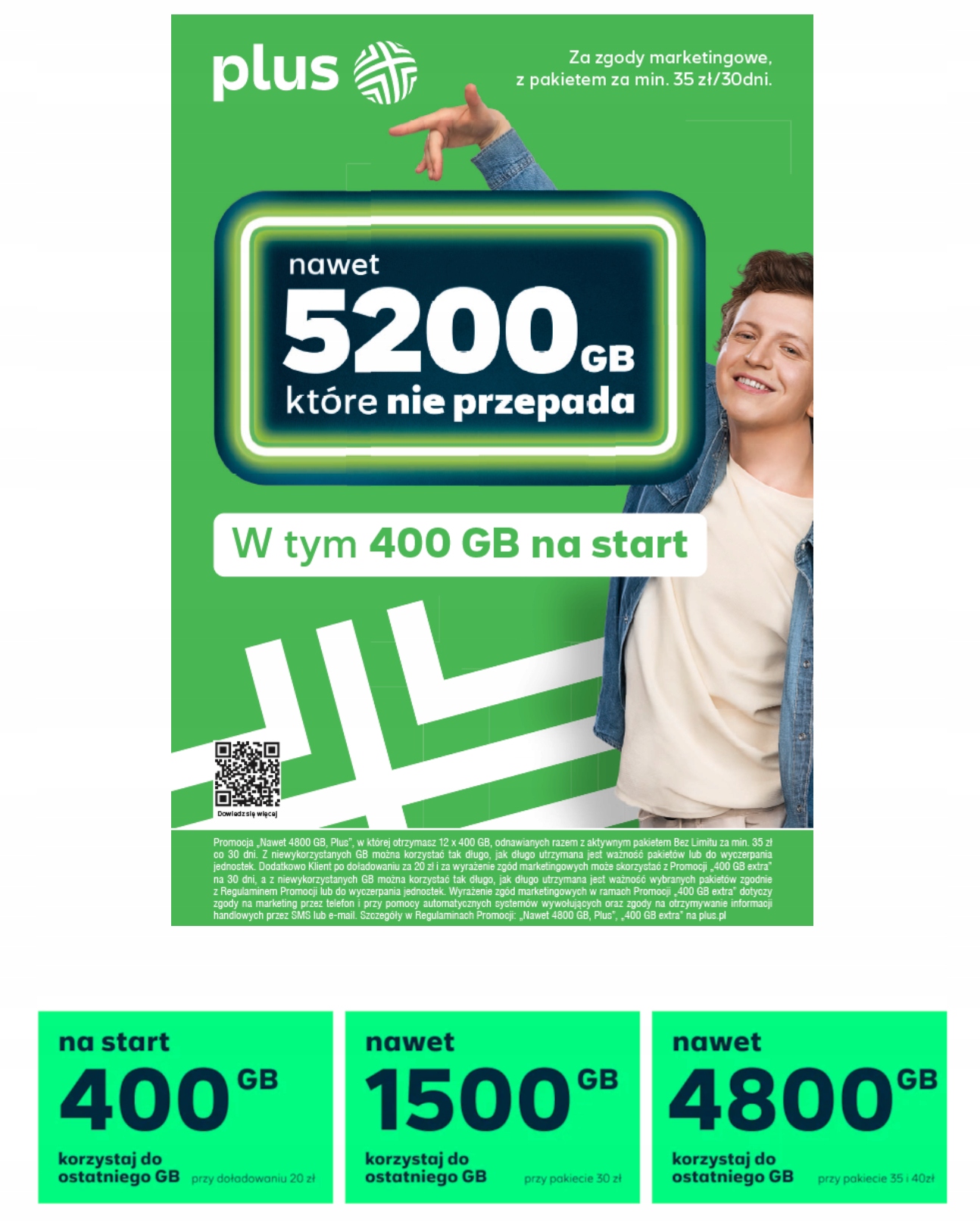 Wyrażenie zgód marketingowych w ramach promocji „200 GB extra” dotyczy zgody na marketing przez telefon i przy pomocy automatycznych systemów wywołujących oraz zgody na otrzymywanie informacji handlowych przez SMS lub e-mail.