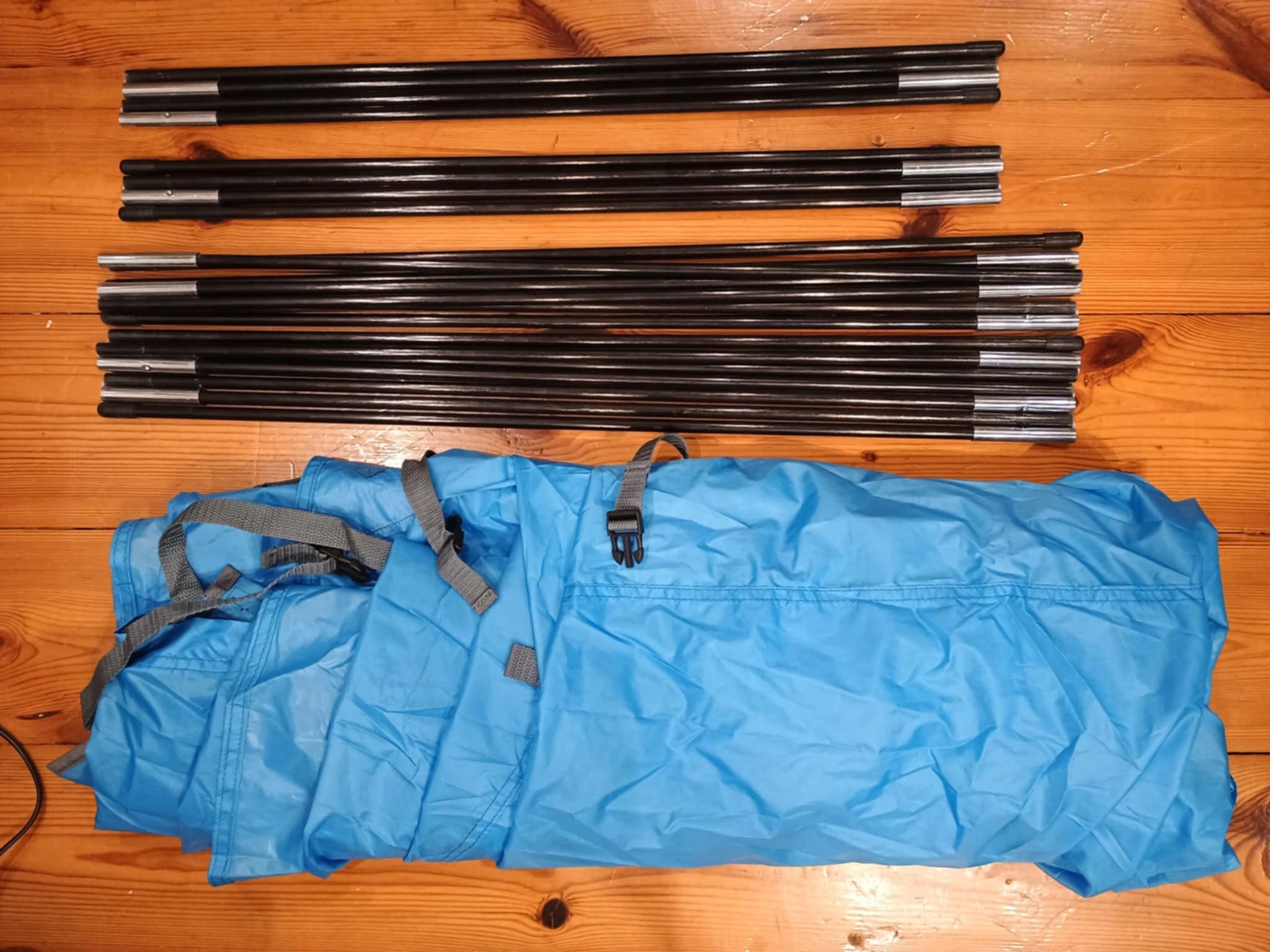 - Kolor: niebieski;- Materiał: Fiberglas, PE;- Całkowite wymiary: dł. 360 x szer. 175 x wys. 180 cm;- Średnica pręta: Ø 8,5 mm;