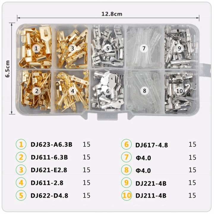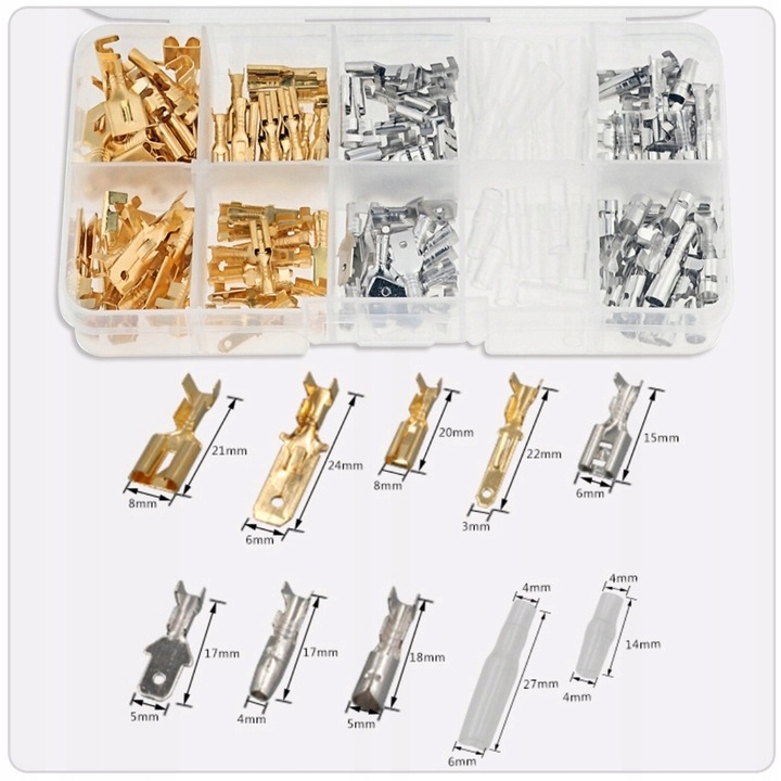 ⭐ Zestaw konektorów w 9 wersjach jest nieizolowany i montowany na kabel.