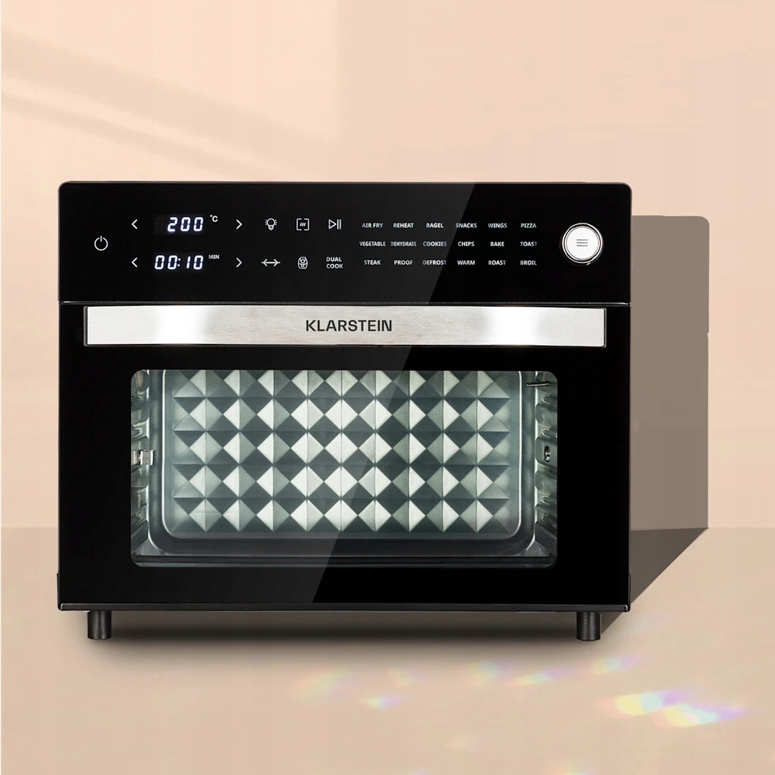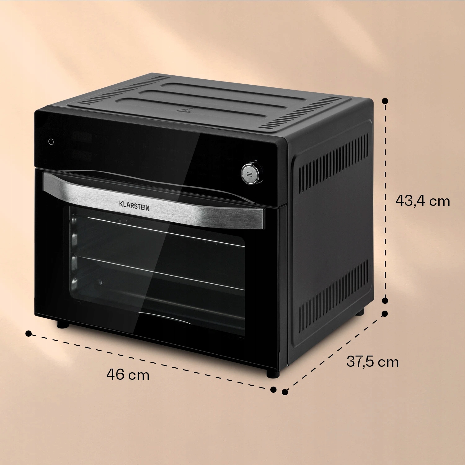 Smażenie, pieczenie, grillowanie czy opiekanie - wszystkie te funkcje nie stanowią problemu dla Vigor Air dzięki dwóm elementom grzewczym (górny i dolny element grzewczy). Dzięki 18 wstępnie ustawionym programom i czytelnemu panelowi dotykowemu można łatwo i wygodnie cieszyć się szeroką gamą smacznych potraw. Dzięki pojemności 30 litrów to atrakcyjne urządzenie jest bardzo pojemne i szczególnie nadaje się dla rodzin lub dużych gospodarstw domowych. Bogaty zestaw akcesoriów i specjalne funkcje, takie jak podwójne gotowanie, sprawią, że spełni każde życzenie.