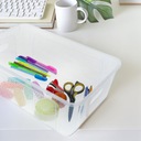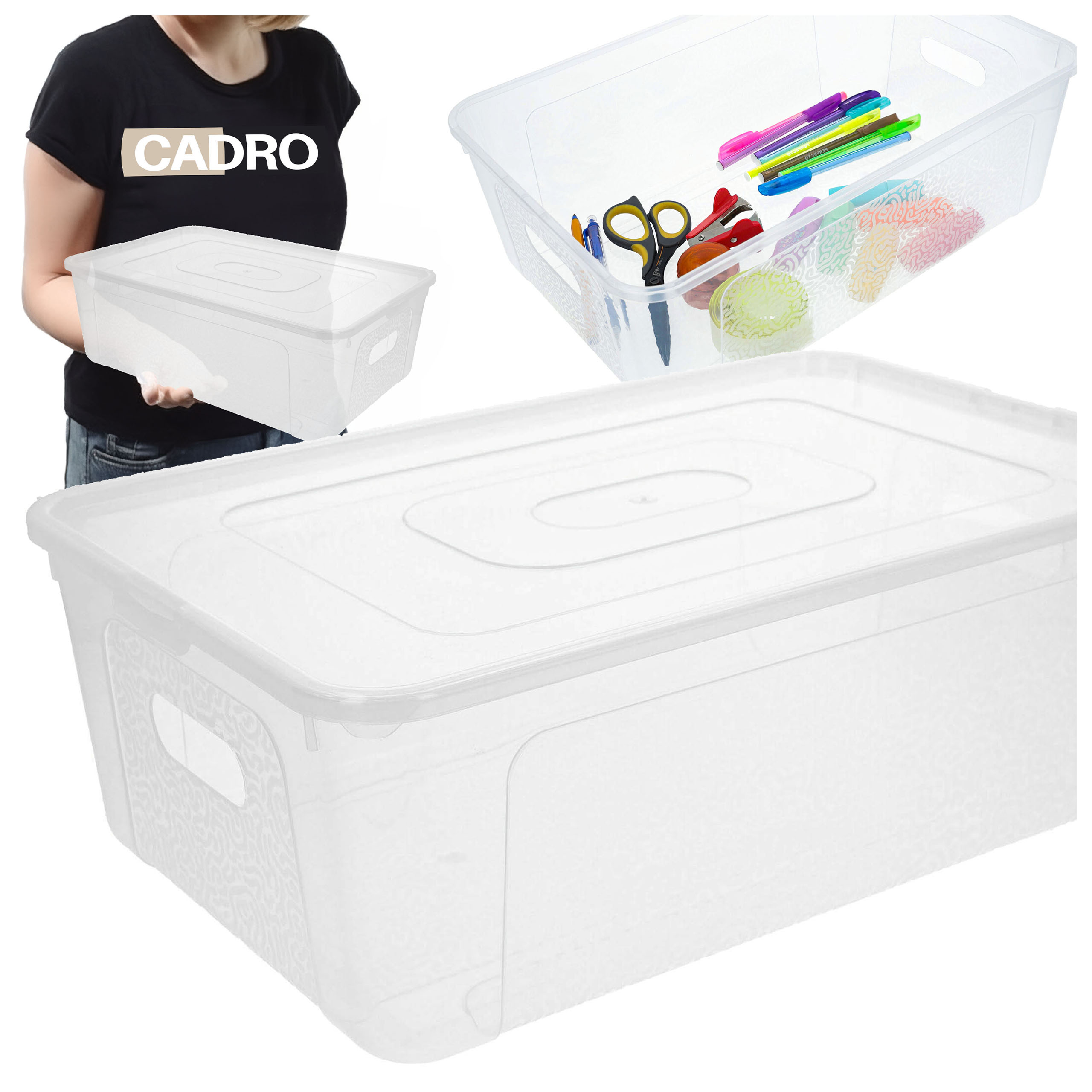 Pojemnik wyposażony w praktyczną pokrywę zapewniającą ochronę przed kurzem i wilgocią, dzięki czemu nadaje się do przechowywania różnorodnych przedmiotów w różnych warunkach.