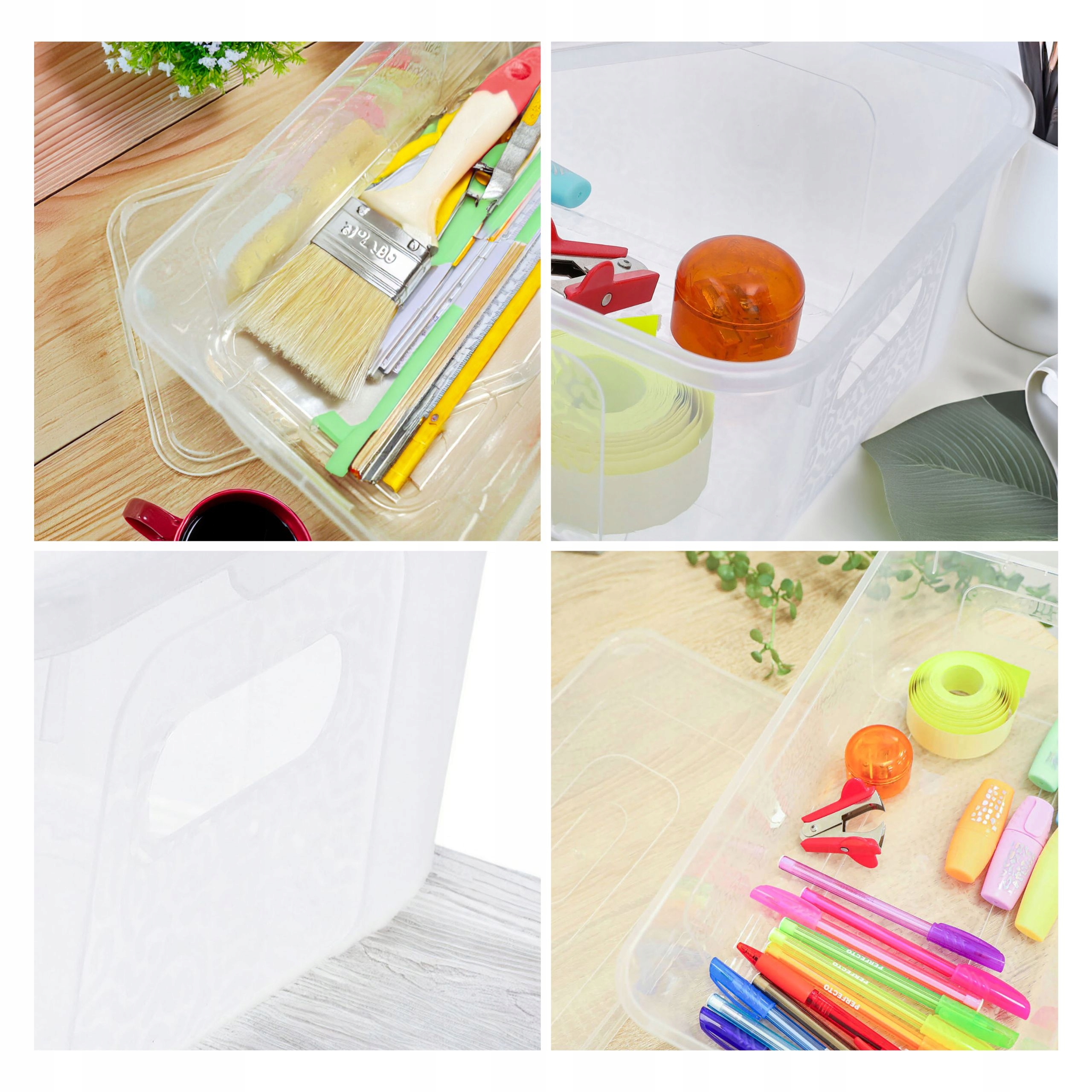 Estetyczny wygląd w kolorze przezroczystym sprawia, że pojemnik pasuje do każdego wnętrza, dodając elegancji i harmonii. Ponadto, przezroczystość pozwala szybko zlokalizować potrzebne przedmioty bez konieczności otwierania pojemnika, co oszczędza czas i ułatwia organizację.