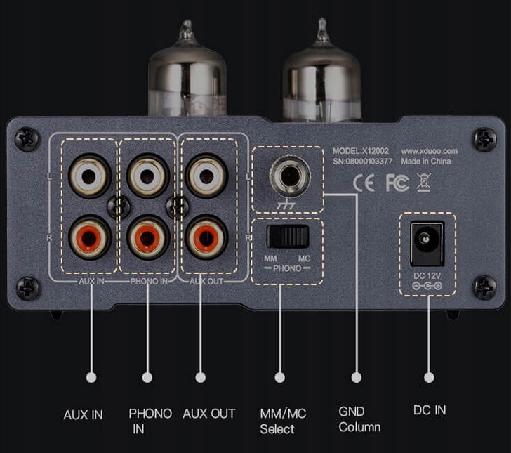 xDuoo MP-01 оснащен не только фоно-входом, но и AUX-входом. Позволяет подключение лампового предусилителя компании к проигрывателям MM и MC (выбор с помощью специального коммутатора), компьютерами, проигрывателями компакт-дисков, телевизорами, ЦАП или аудиоплееры.