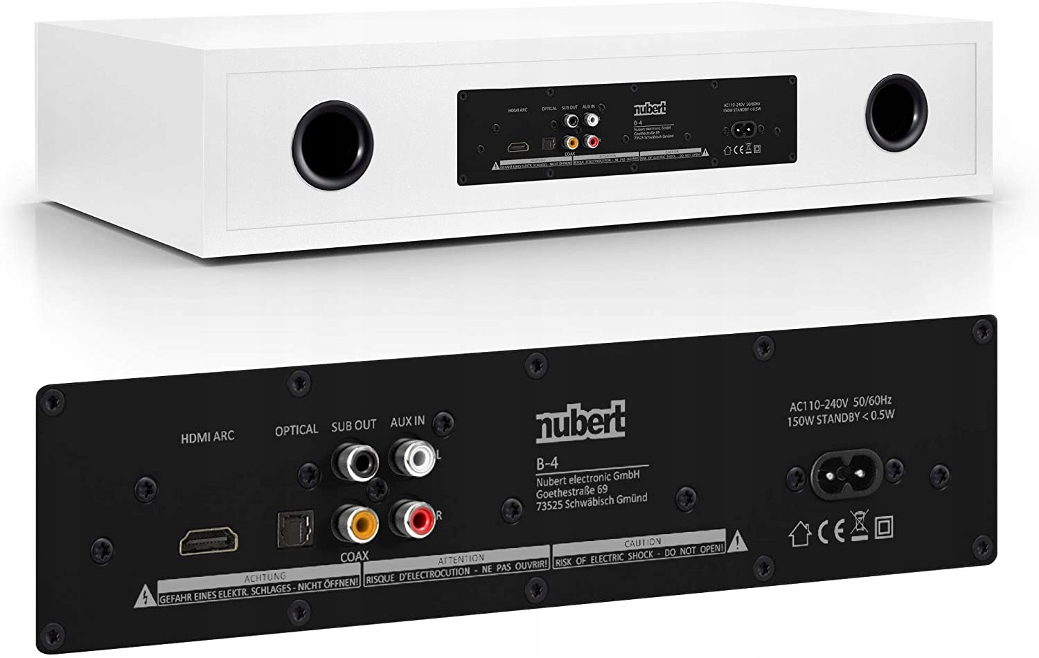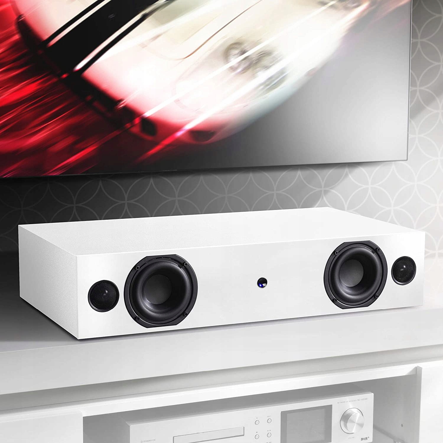 Powystawowy soundbar Nubert NuBox AS-225 w kolorze białym.