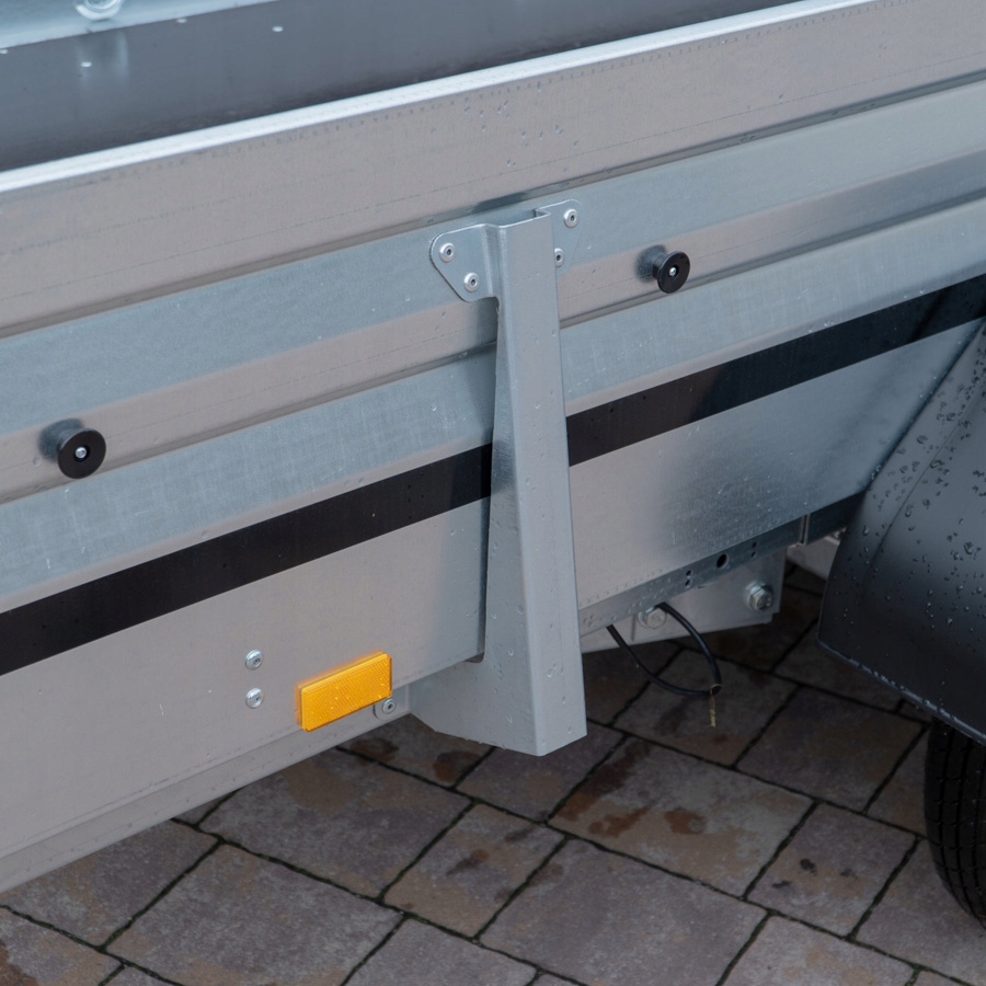 Seria 2000 to trwałe przyczepy o nisko umieszczonym progu załadunkowym oraz , wzmocnionej ramie. Umożliwiają łatwy załadunek, dostępne w różnych rozmiarach w wersji z hamulcem lub bez, o pojedynczej lub podwójnej osi. Niektóre modele posiadają funkcję przechyłu. Wszystkie wersje wyposażone są w wewnętrzne uchwyty do mocowania ładunku. Dostępna szeroka gama akcesoriów. Zdjęcia są zdjęciami poglądowymi i mogą przedstawiać opcjonalne elementy wyposażenia. Idealna przyczepa dla firm budowlanych (mieści płytę gipsową) jak również dla użytku domowego w każdym gospodarstwie. Dzięki otwieranej przedniej burcie swobodnie przewieziesz długie ładunki. Przyczepa wyposażona w uchwyty do mocowania pasów by przewożony ładunek został odpowiednio zabezpieczony podczas transportu.