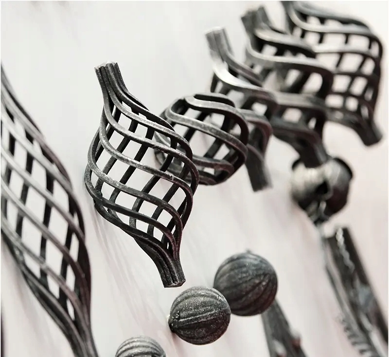 Stalowy element kuty - koszyk (cebulka), wykonany z 4 prętów kwadratowych 12x12mm.Umieszczany na prętach i profilach jako ozdoba, wykorzystywany w projektowaniu bram, ogrodzeń, krat, furtek i balustrad. Produkt w stanie surowym, do wykończenia we własnym zakresie. Komplet 10 sztuk.