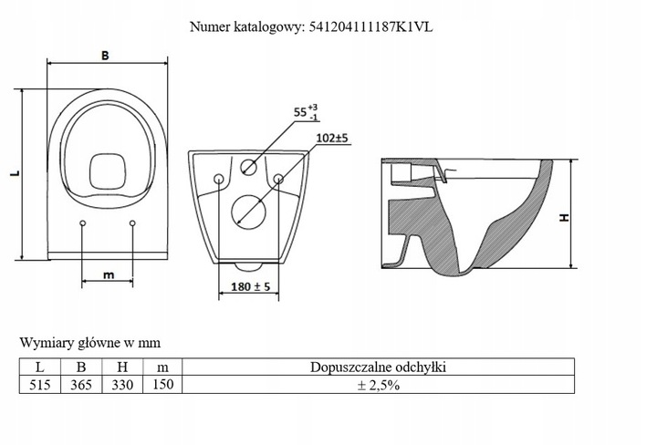 VITALLE LUKKA miska WC ceramiczna wisząca bezkołnierzowa 36.5 x 51.5 x 33 biała z deską wolnoopadającą VITALLE LUKKA