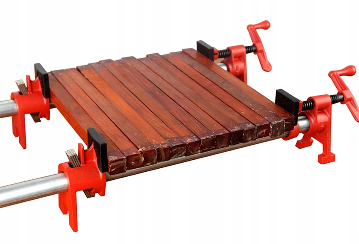 Zamiennik standardowych ścisków stolarskich typu F, pozwala jednocześnie na dużo szersze zastosowanie dzięki długości ograniczonej tylko długością rury. Jeden komplet pozwala na złożenie ścisku o ramieniu długości nawet 200cm i więcej.