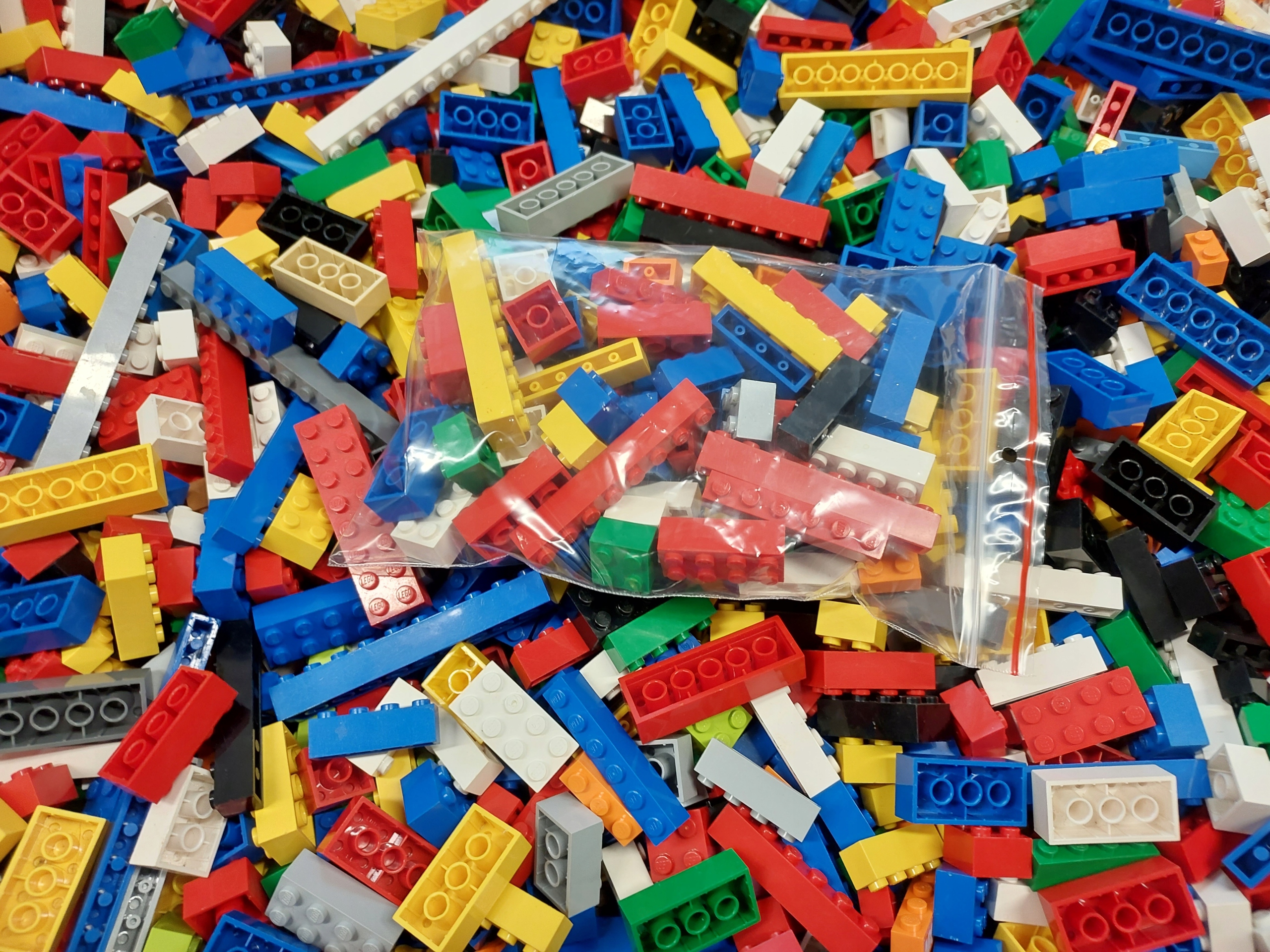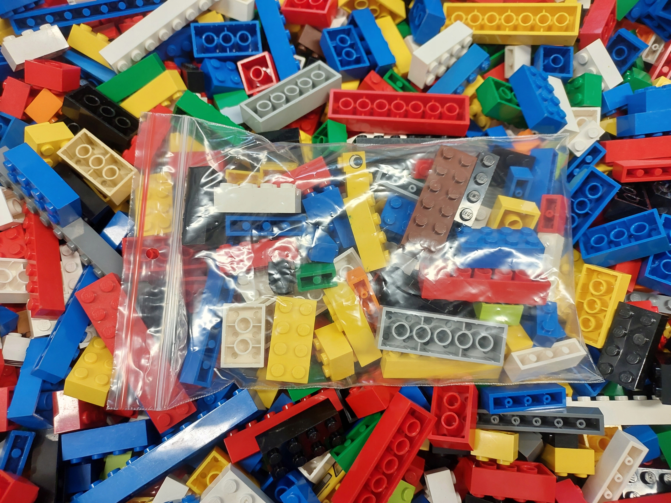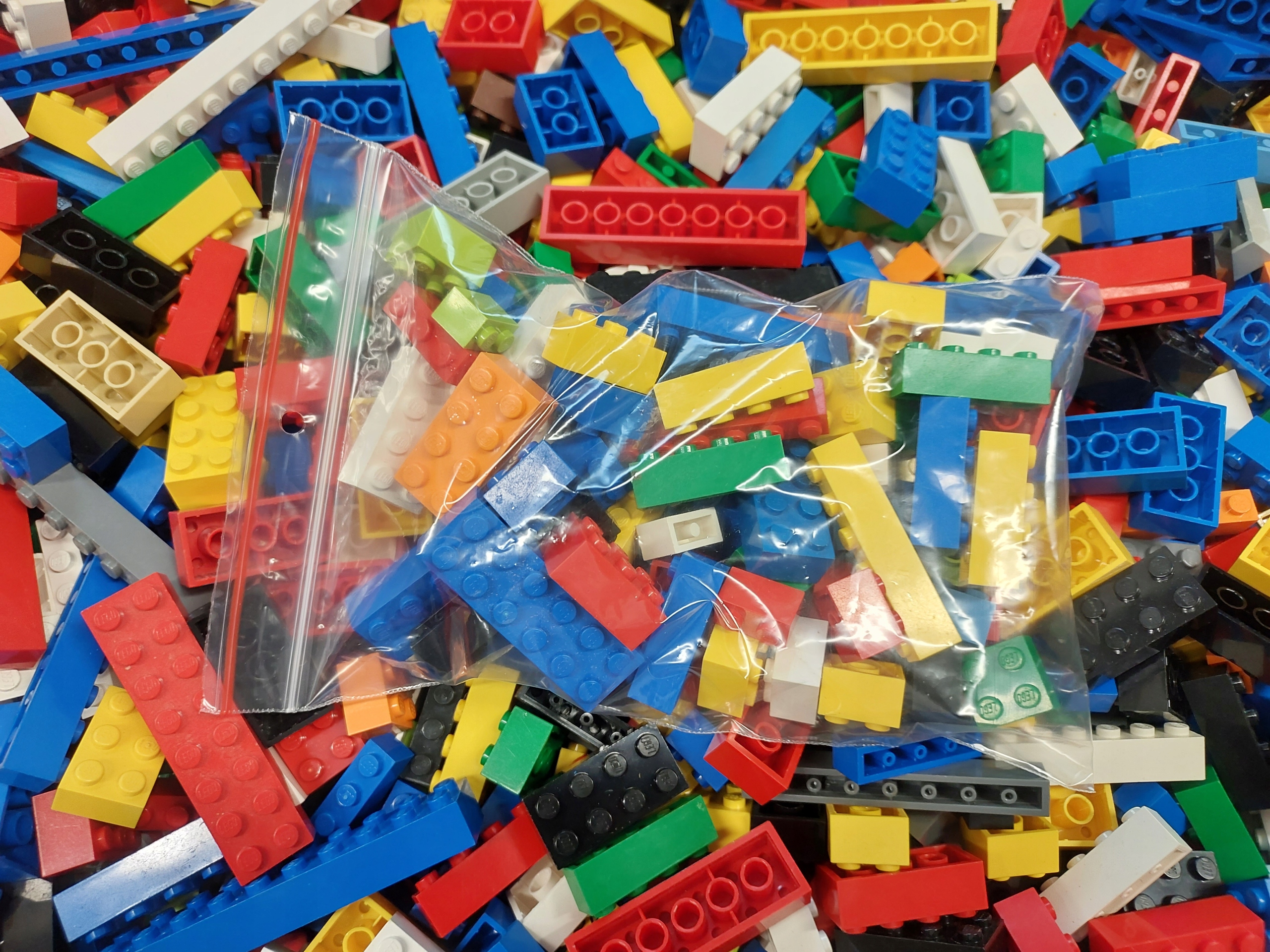 Ostatnie zdjęcia przedstawiają losowe worki po 100g cegiełek.