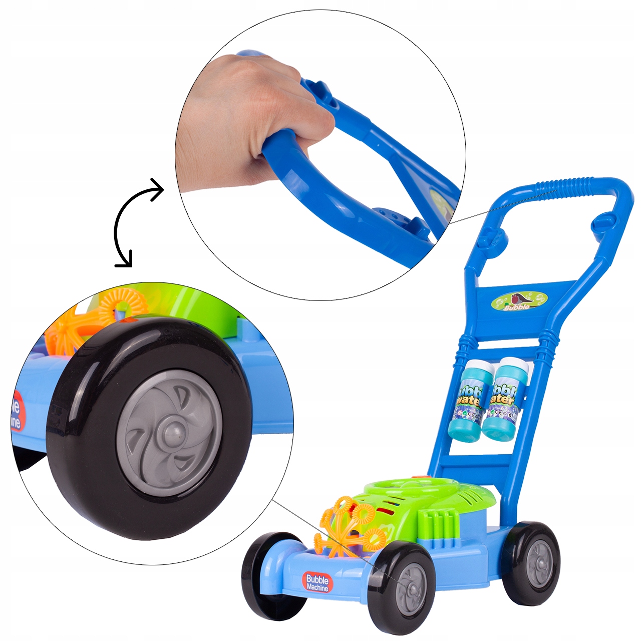 Podczas popychania zabawki usłyszymy wesołe melodie oraz zobaczymy unoszące się bańki mydlane.