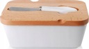 Połączenie głębokiej bieli z drewnianym elementem nadaje maselniczce wyjątkowego wyglądu, dzięki czemu pojemnik wygląda elegancko i nowocześnie.