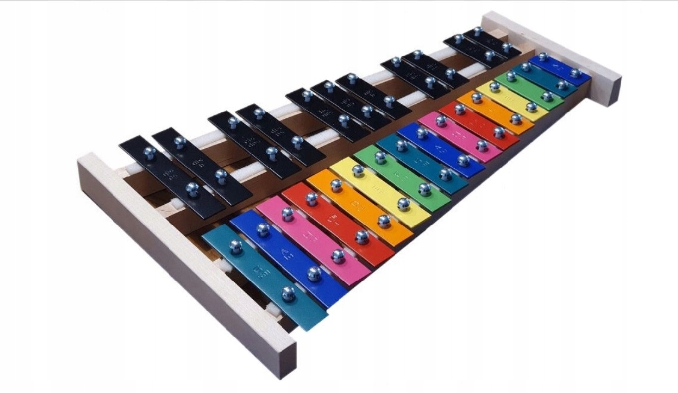 Dzwonki chromatyczne firmy MATMAX to doskonały instrument muzyczny, idealny zarówno do użytku szkolnego, jak i do zajęć z rytmiki. Instrument posiada 27 blaszek, co oznacza dwie pełne oktawy wraz z półtonami, dzięki czemu umożliwia grę szerokiego repertuaru utworów. Dzwonki są elektronicznie strojone, co zapewnia ich doskonałą intonację i precyzyjny dźwięk, co jest szczególnie ważne w edukacji muzycznej dzieci.