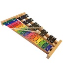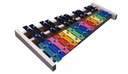 Instrument został zamontowany na solidnej, drewnianej podstawie, co nie tylko wpływa na jego stabilność, ale również dodaje estetycznego wyglądu. W zestawie znajdują się dwie drewniane pałeczki, idealnie dopasowane do dzwonków, które pozwalają na łatwe i wygodne granie.