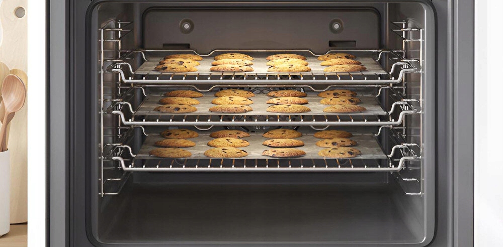 Od teraz możesz piec większą ilość swoich ulubionych ciasteczek na trzech poziomach jednocześnie. Wentylator cyrkulacyjny 3D szybko i równomiernie rozprowadza ciepło po całym wnętrzu, dzięki czemu możesz przygotowywać jednocześnie różne potrawy (np. lasagne i babeczki) bez obawy o przenikanie smaków.
