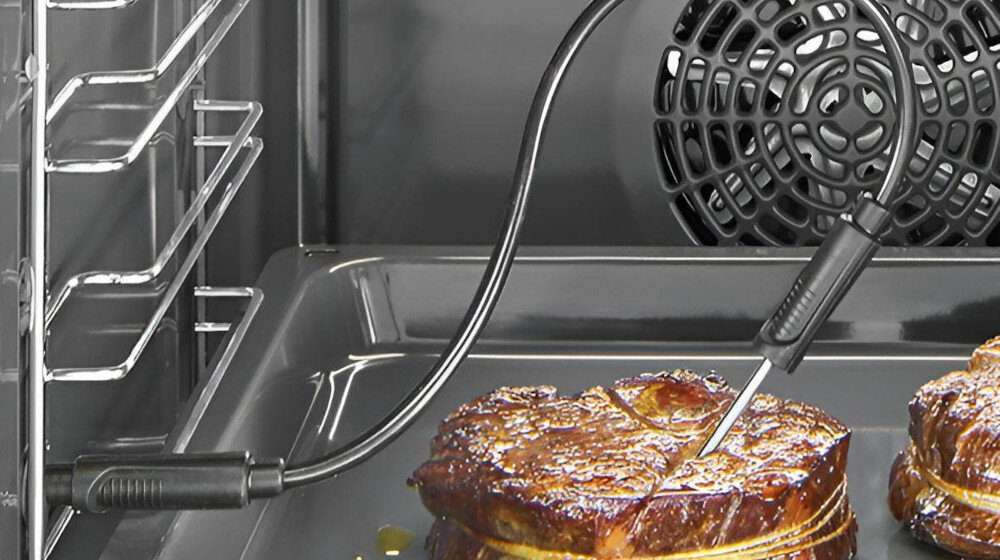 Nie ma już konieczności sprawdzania miękkości mięsa długą wykałaczką czy nakłuwania widelcem. Eksperci BOSCH wprowadzili termosondę. Ten bardzo praktyczny czujnik pozwala dostosować temperaturę wewnątrz przygotowywanej potrawy. Gdy osiągnie odpowiednią temperaturę, piekarnik automatycznie się wyłączy i poinformuje Cię o tym dając sygnał..