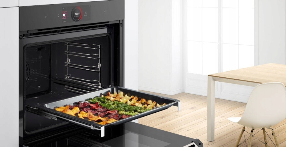 Drzwi piekarnika otwierają się i zamykają bardzo delikatnie i cicho, dzięki systemom Soft Open i Soft Close. Codzienne użytkowanie drzwiczek piekarnika jest teraz łatwiejsze niż kiedykolwiek, a specjalny mechanizm wygłuszający skutecznie zapobiega głośnemu domykaniu drzwiczek. Do zamknięcia wystarczy lekkie naciśnięcie, a mechanizm sam wyhamuje drzwi i domyka je cicho i ostrożnie, co zapewnia długą żywotność zarówno urządzenia BOSCH, jak i samych drzwiczek.