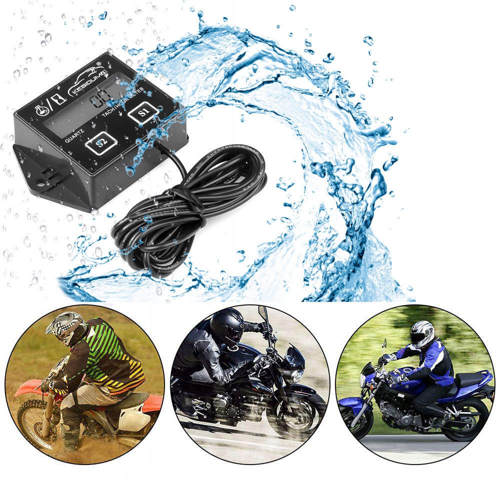 Niewielki licznik czasu pracy silników spalinowych pozwala precyzyjnie kontrolować zużycie silnika i innych podzespołów w urządzeniach takich jak motory, skutery, quady, kosiarki spalinowe czy agregaty prądotwórcze. Uniwersalna konstrukcja sprawia, że można go stosować do wszystkich silników benzynowych, zarówno dwu- jak i cztero-tłokowych.
