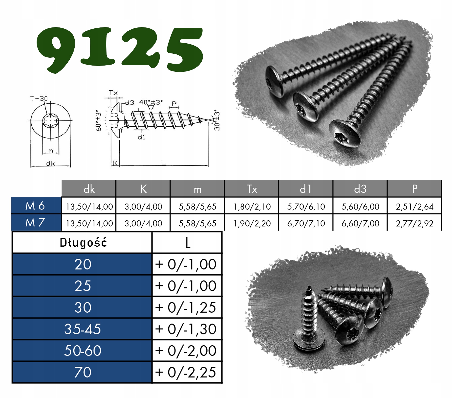 Wkręty zostały wykonane ze stali chromowo – niklowej o najwyższych parametrach jakościowych.