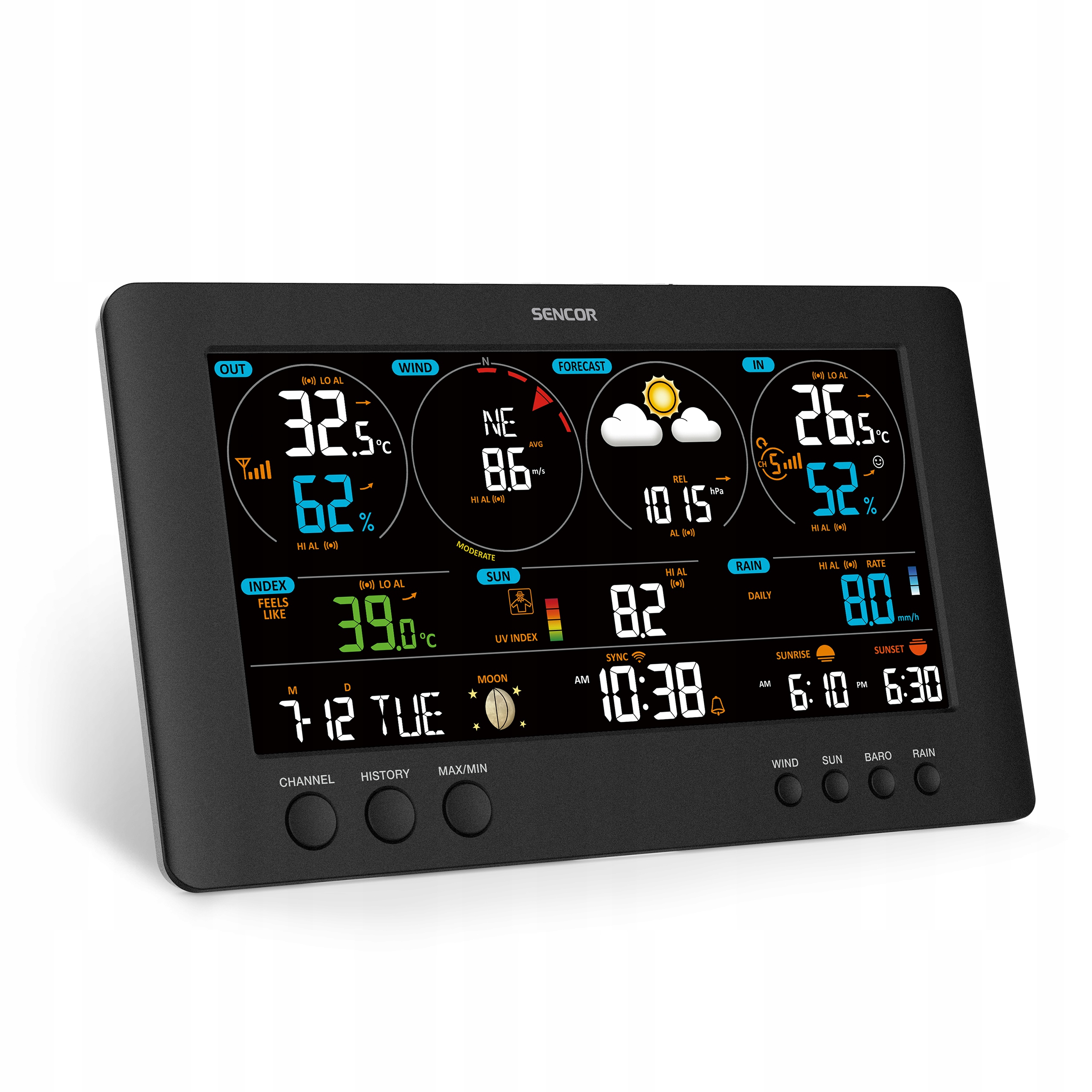 Nasza stacja pogody wskazuje także fazy księżyca. Według naukowców mogą mieć one wpływ na nasze zdrowie i samopoczucie. Przyczyniają się między innymi do występowania migrenowych bólów głowy. Dzięki naszemu urządzeniu można się przygotować na taką ewentualność.