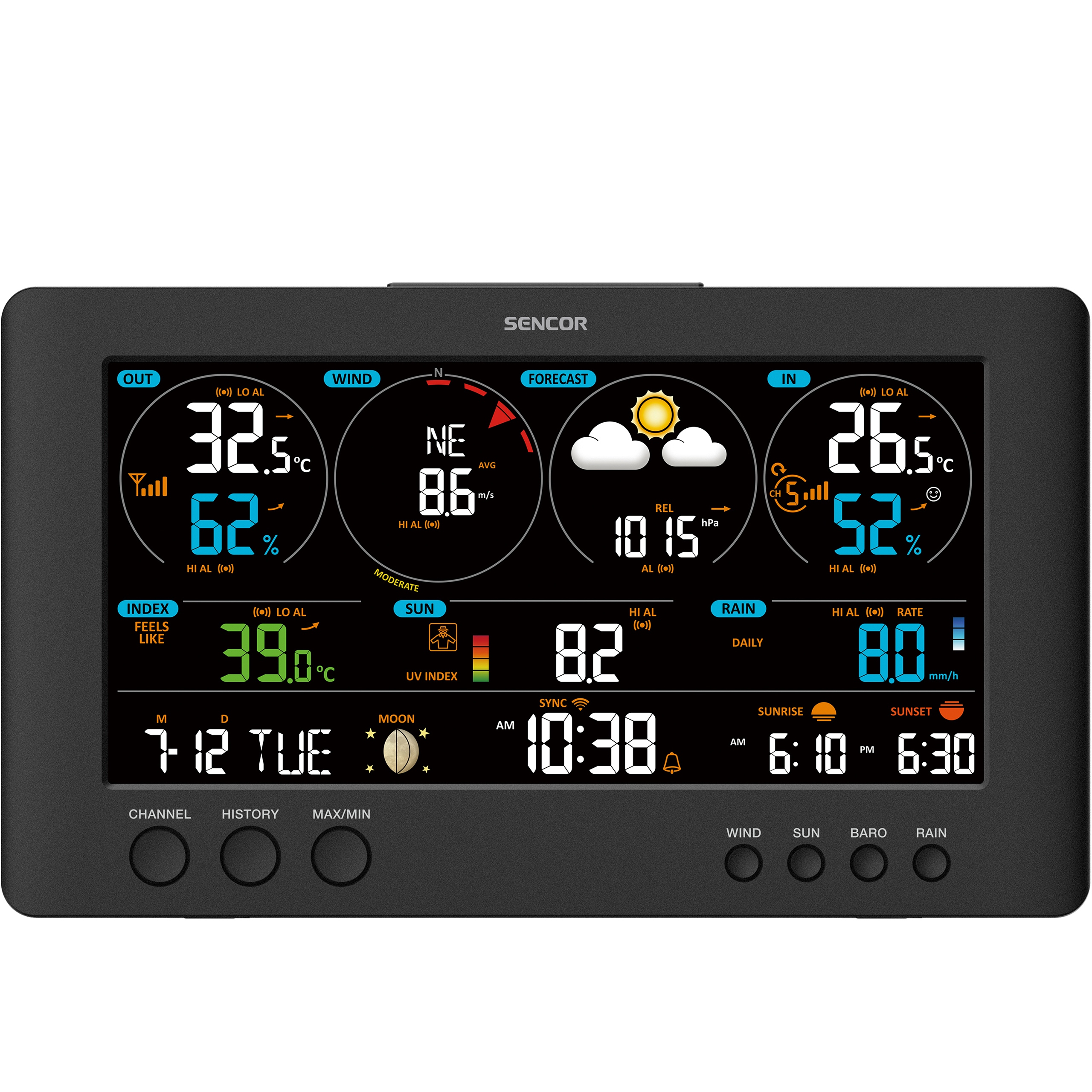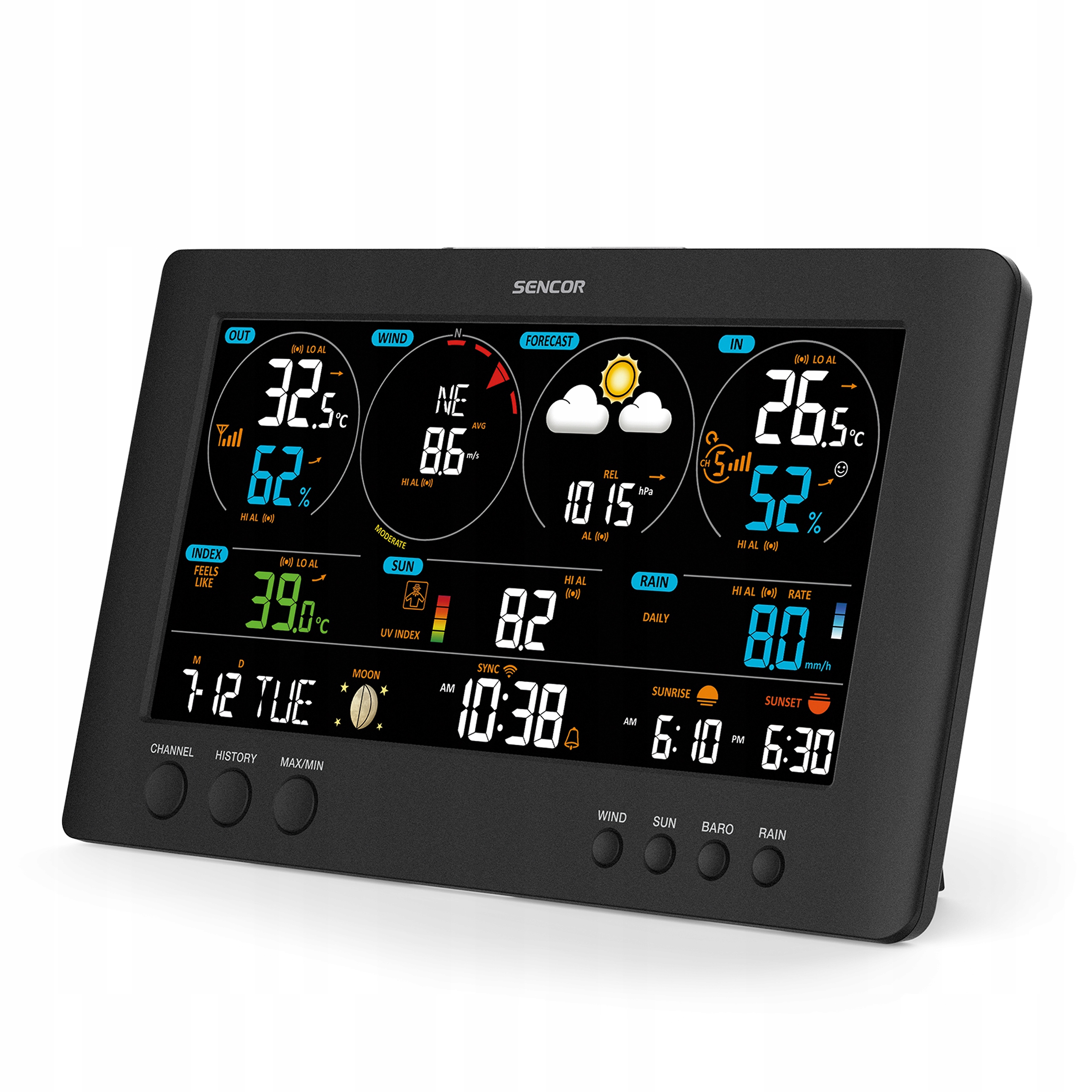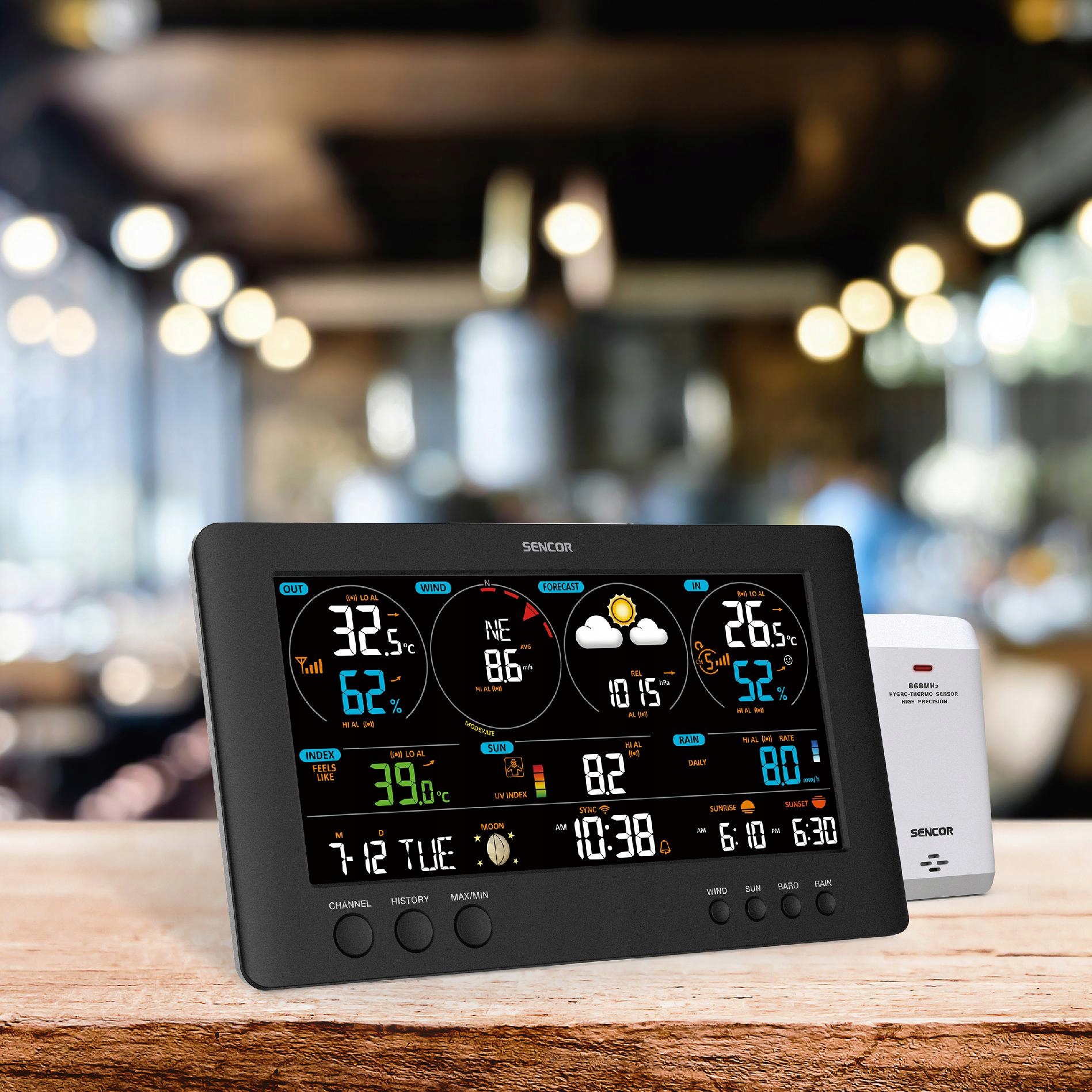 Urządzenie SWS 12500 WIFI marki Sencor zapisuje wcześniejsze pomiary do celów porównawczych. Możesz być pewny, że cię obudzi, jak również ostrzeże w wypadku przymrozków albo intensywnych opadów. Wybierasz się na wycieczkę? Lepiej, żebyś znał indeksy pogodowe. Nasz produkt da ci taką możliwość.