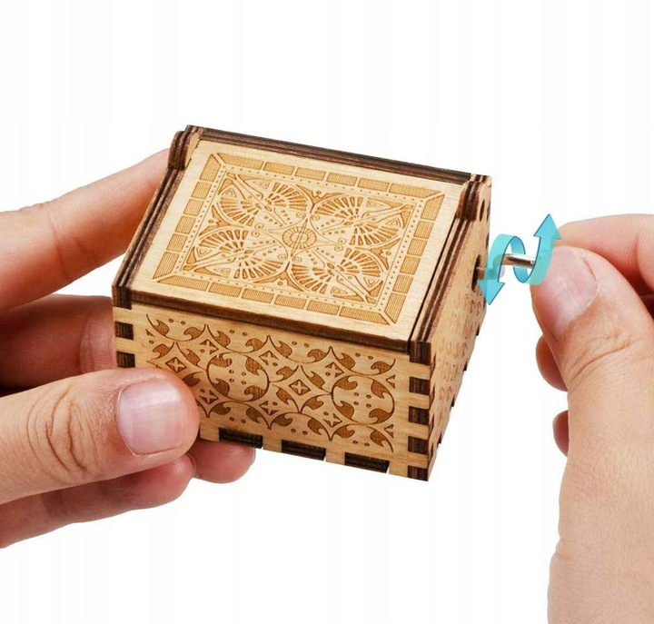 Można wydobyć utwór ciągle i ręcznie obracając korbką tej pozytywki, powoli lub szybko, jak chcesz.