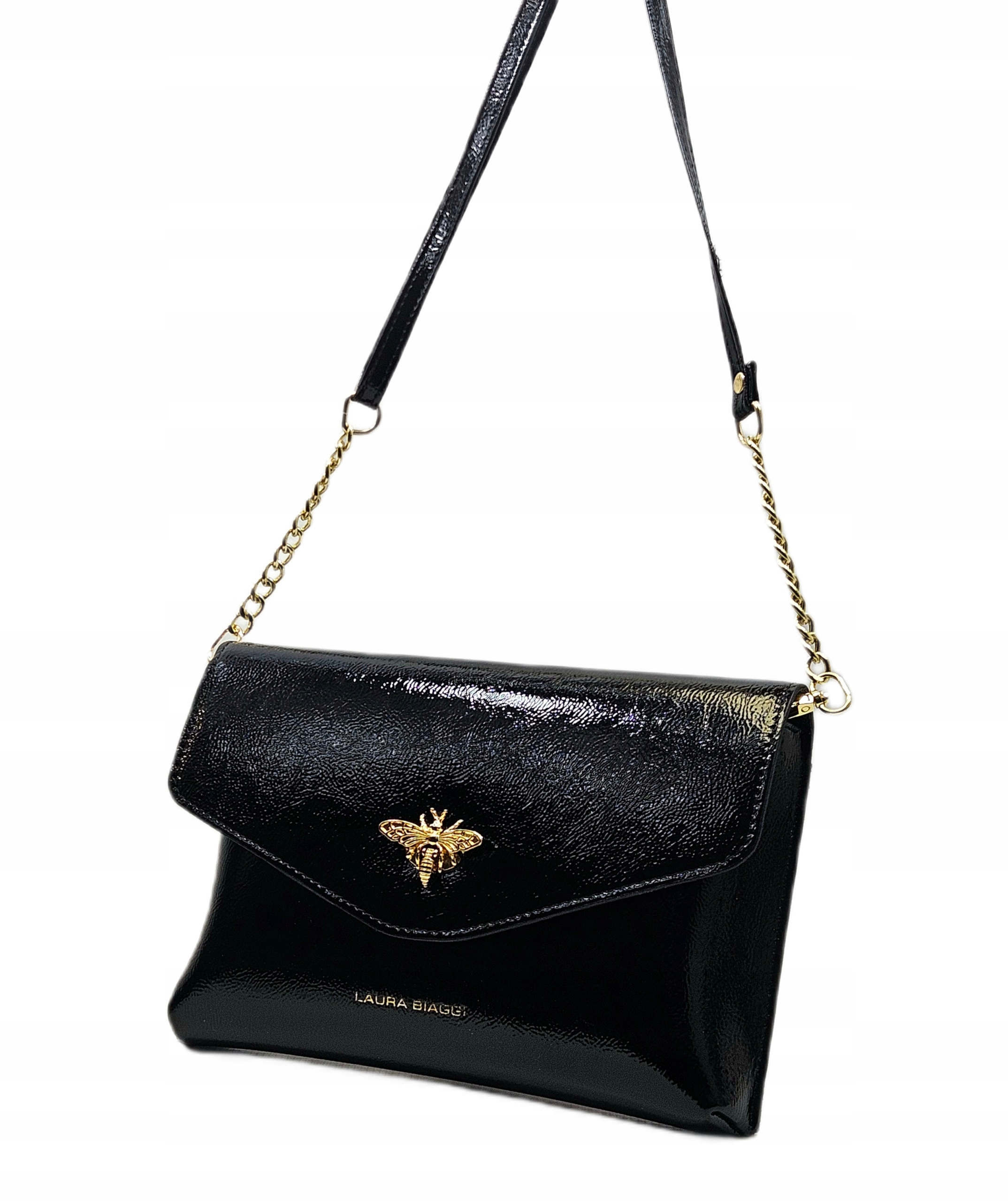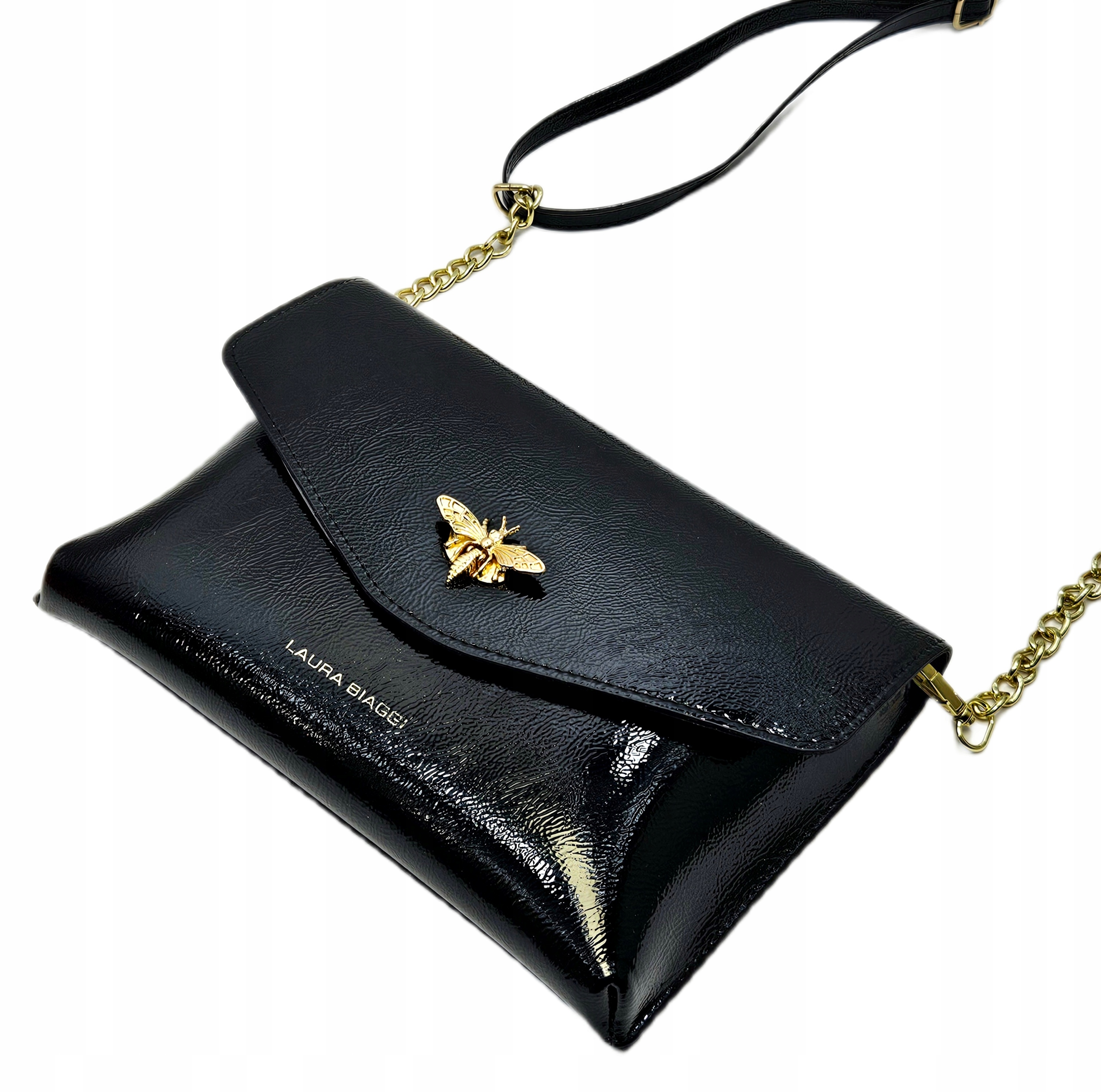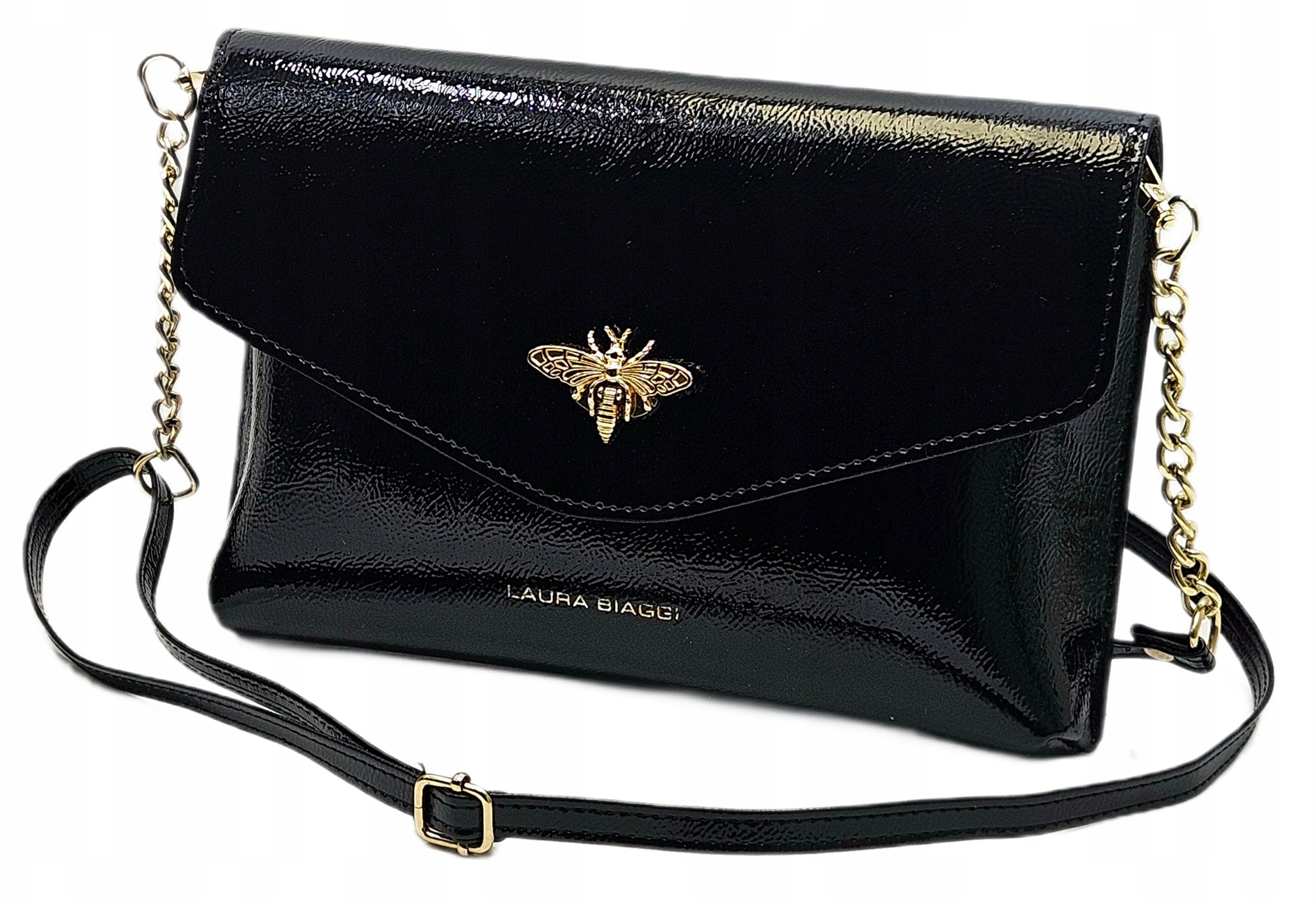 Klasyczna, elegancka kopertówka damska od polskiej marki LAURA BIAGGI to doskonały wybór na różnego rodzaju okazje, czy wieczorne przyjęcia. Jej złote detale oraz logo marki przyciągną wzrok niejednej kobiety. Wykonana z najwyższej jakości skóry ekologicznej, łączy nowoczesny design z dbałością o detale. Wnętrze obszyte solidną, logowaną podszewką w niebrudzącym się kolorze.