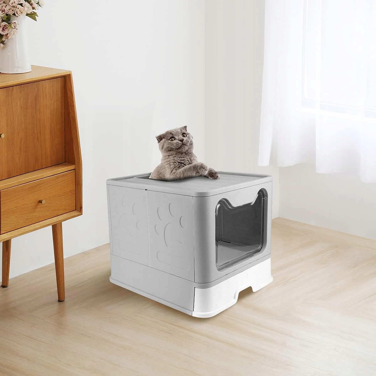 Удобный ящик для мусора для Твоего щенка. Эстетично и практично. Имеет выдвижной ящик для кошачьих туалетов, вешалку для лопаток, два входа (сверху и спереди).
