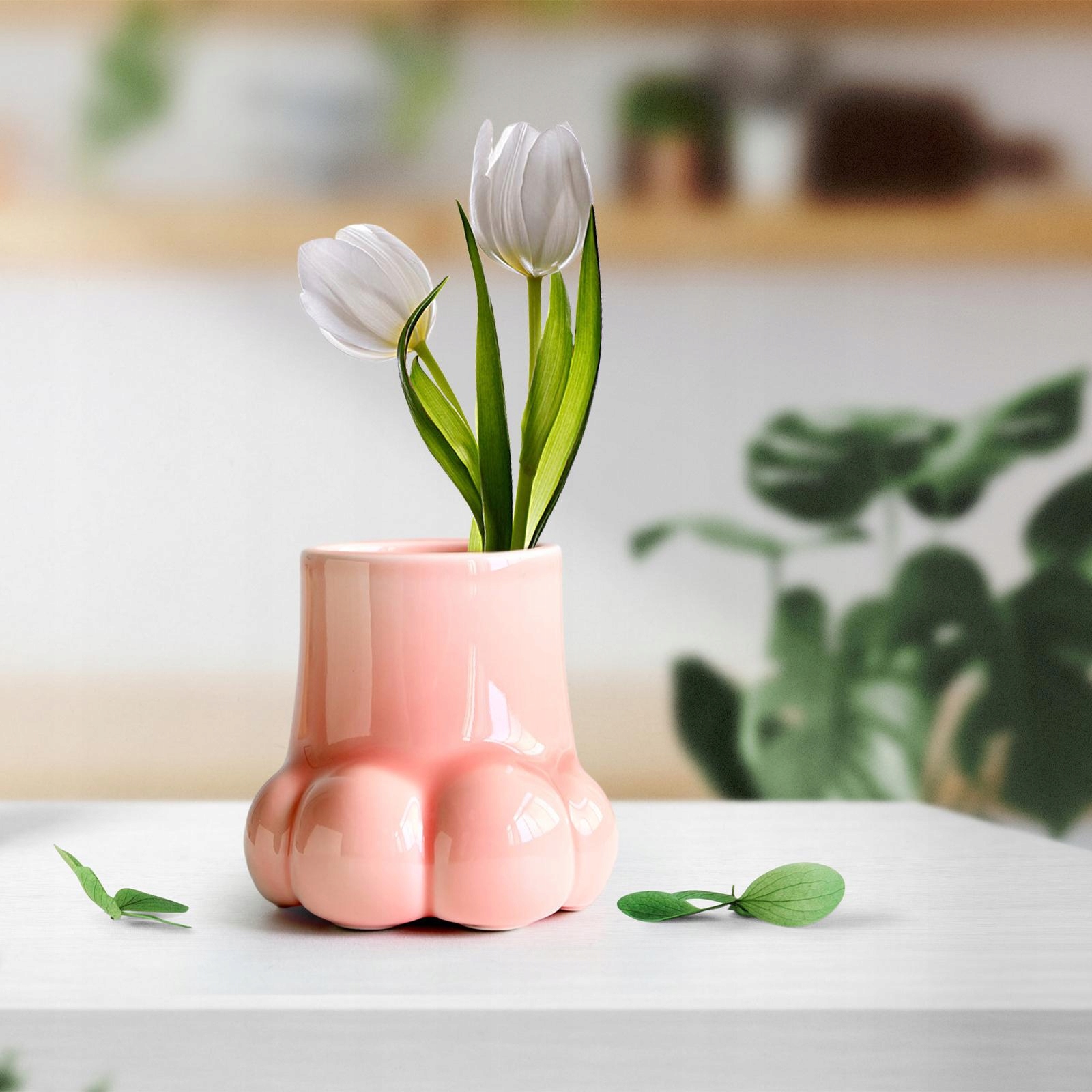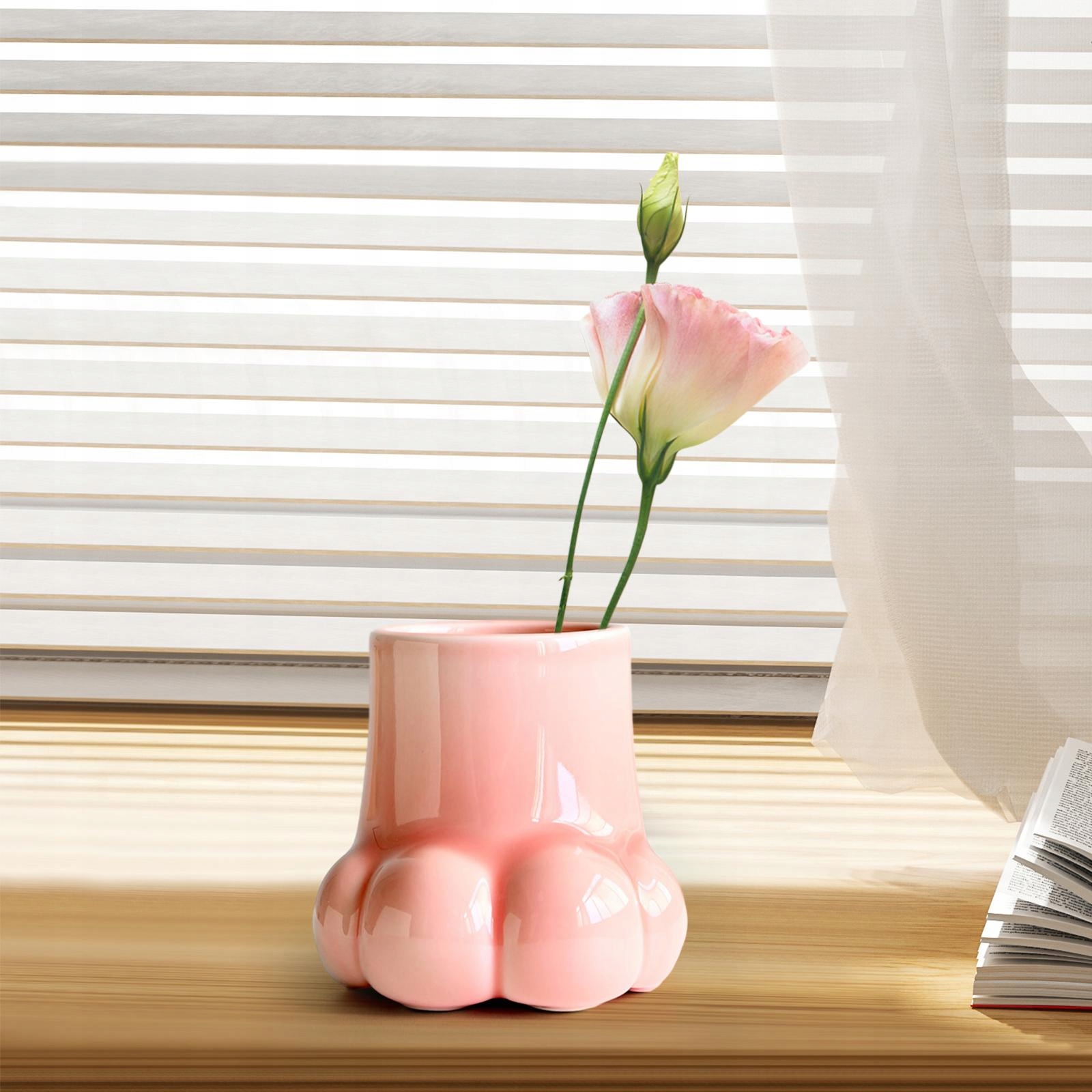 Ceramiczny wazon z pazurami kotka Doniczka Stylowy wazon na rośliny na prezent na parapetówkę Różowy