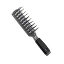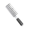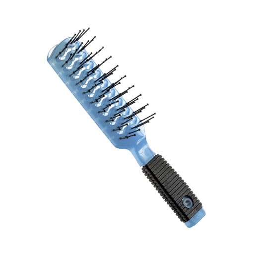 Antystatyczna, wielofunkcyjna, przelotowa szczotka - dzięki zygzakowatym otworom w korpusie szczotki i elastycznym szpilkom umieszczonym jest idealna nie tylko do rozczesywania, ale również szybkiego suszenia włosów. Szpilki zakończone kuleczkami, masują skórę głowy podczas rozczesywania włosów a profilowana, płaska, gumowana rączka ułatwia manewrowanie szczotką podczas stylizacji włosów.