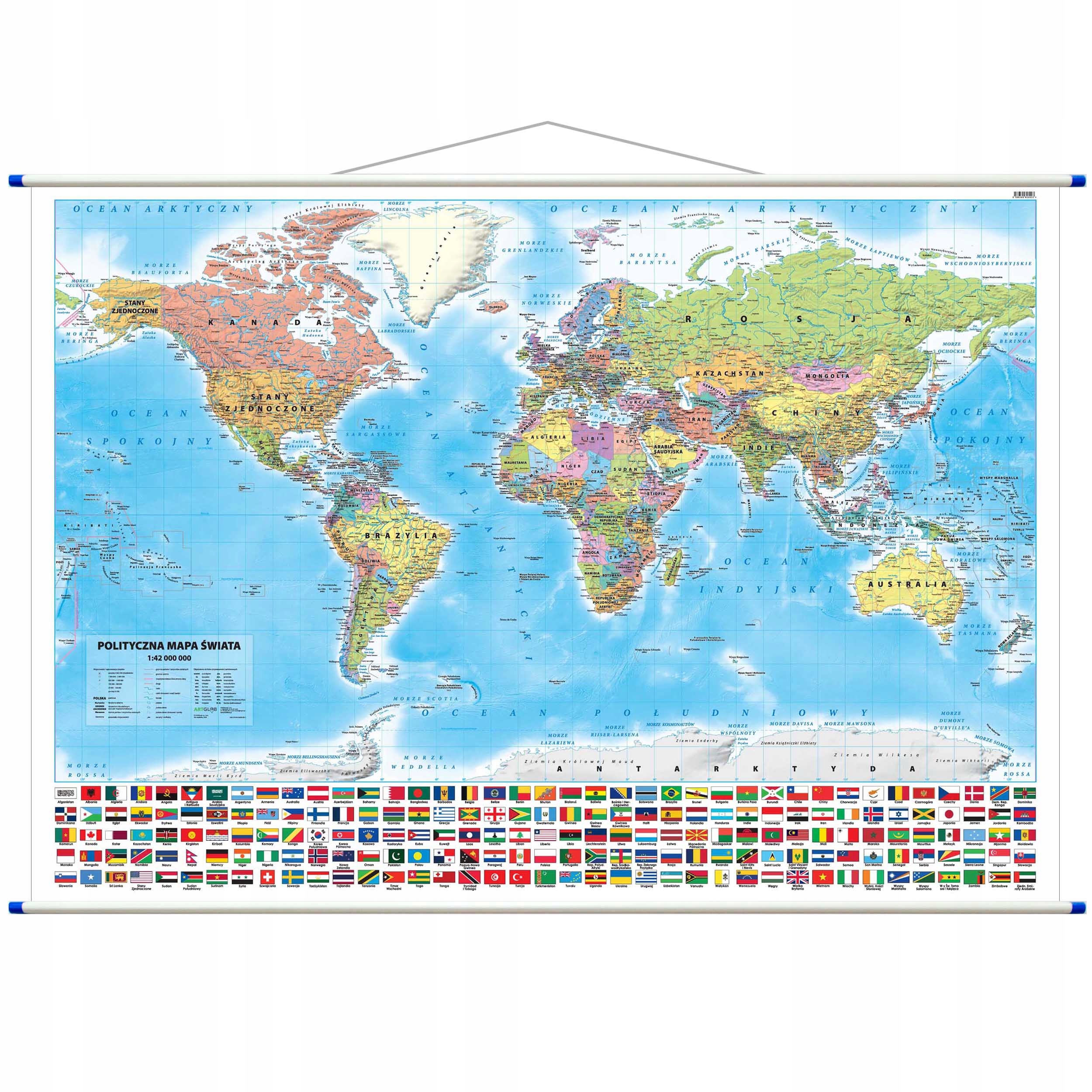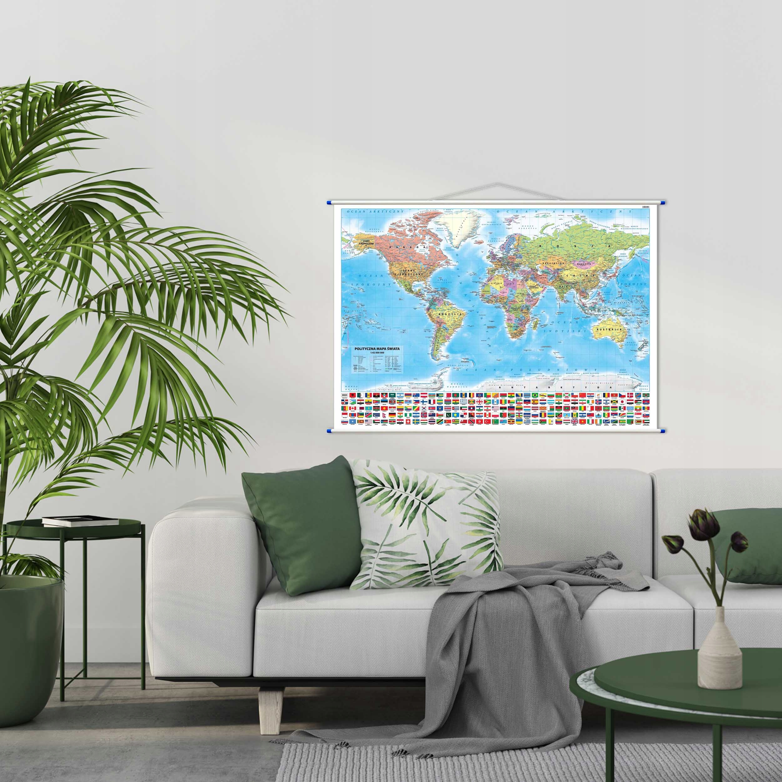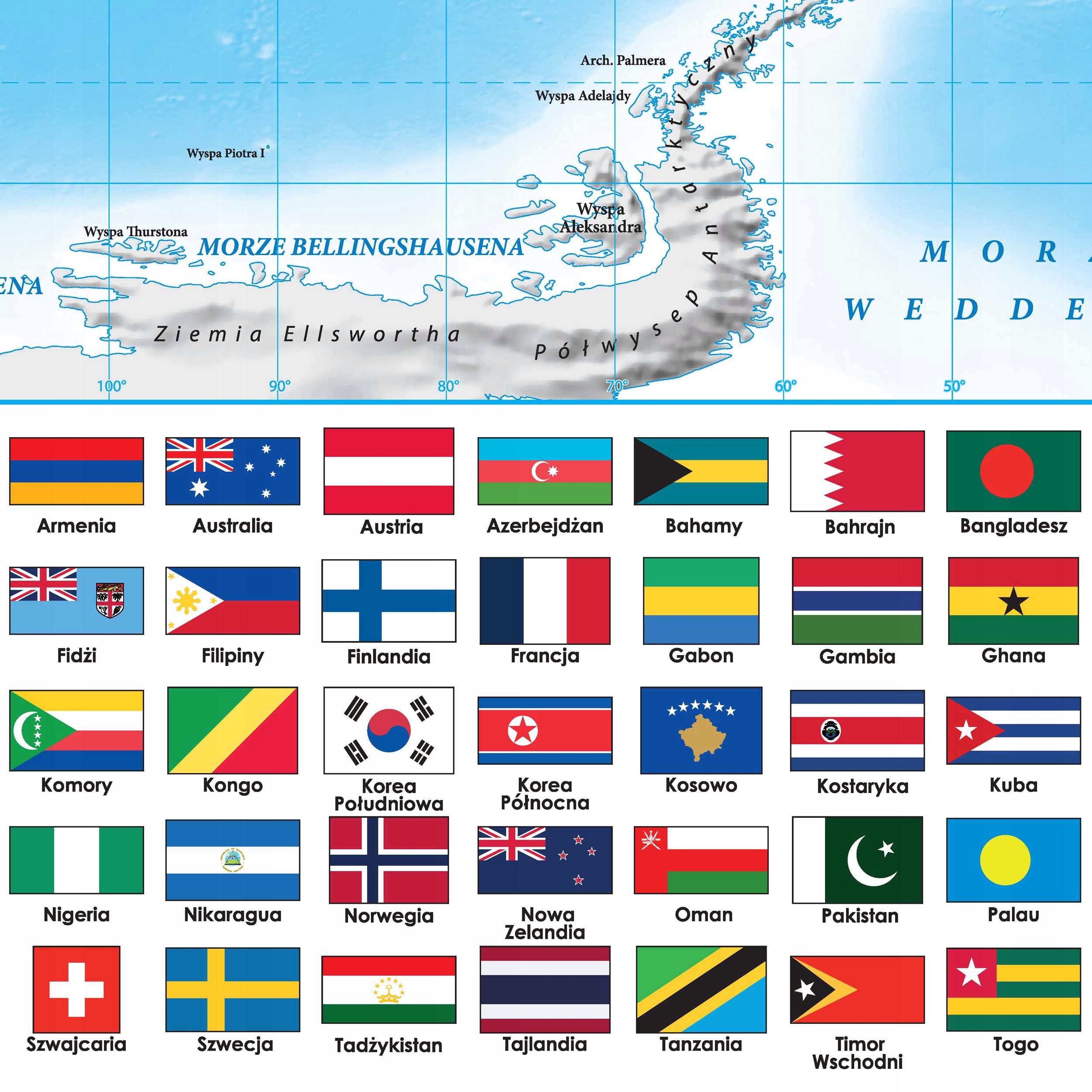 ➡️ Dodatkowo w dolnej części mapy umieszczono flagi wszystkich państw świata, dzięki czemu stanowi ona bogate źródło wiedzy.
