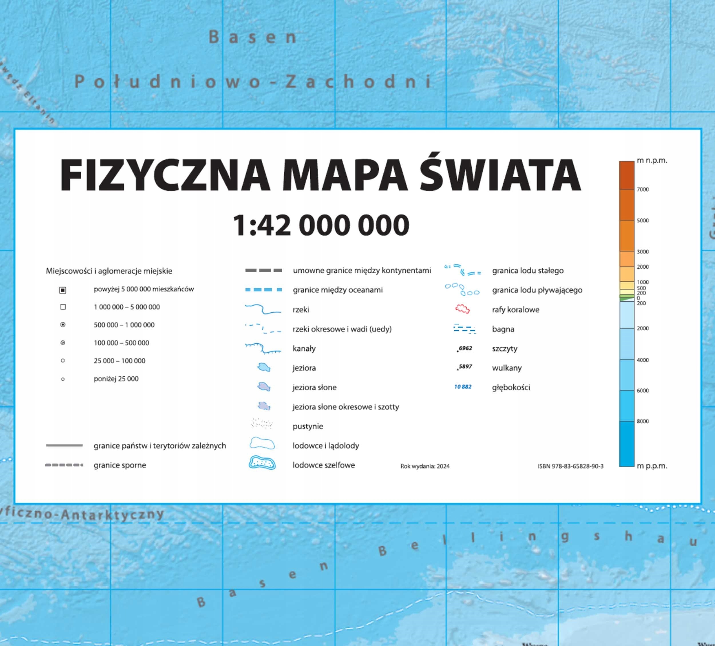 ➡️ Obecnie jest to najnowsze opracowanie politycznej i hipsometrycznej mapy świata z cieniowaną rzeźbą terenu.