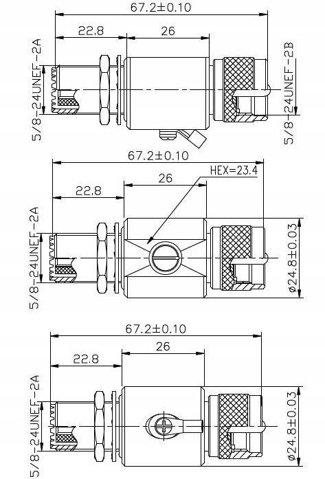Wersja ze złączami typu UHF (gniazdo SO-239, wtyk PL-259). Izolator teflonowy, styki złocone.