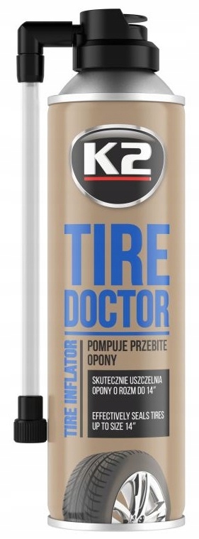 K2 Tire Doktor szybko i skutecznie pompuje i uszczelnia przebite opony - tymczasowa naprawa bez demontażu i użycia narzędzi. Aerozol pompuje oponę, a specjalna lateksowa formuła uszczelnia dziurę. Preparat nie wpływa na wyważenie koła.