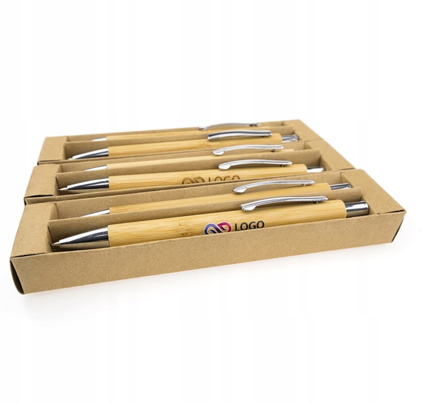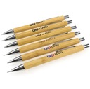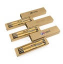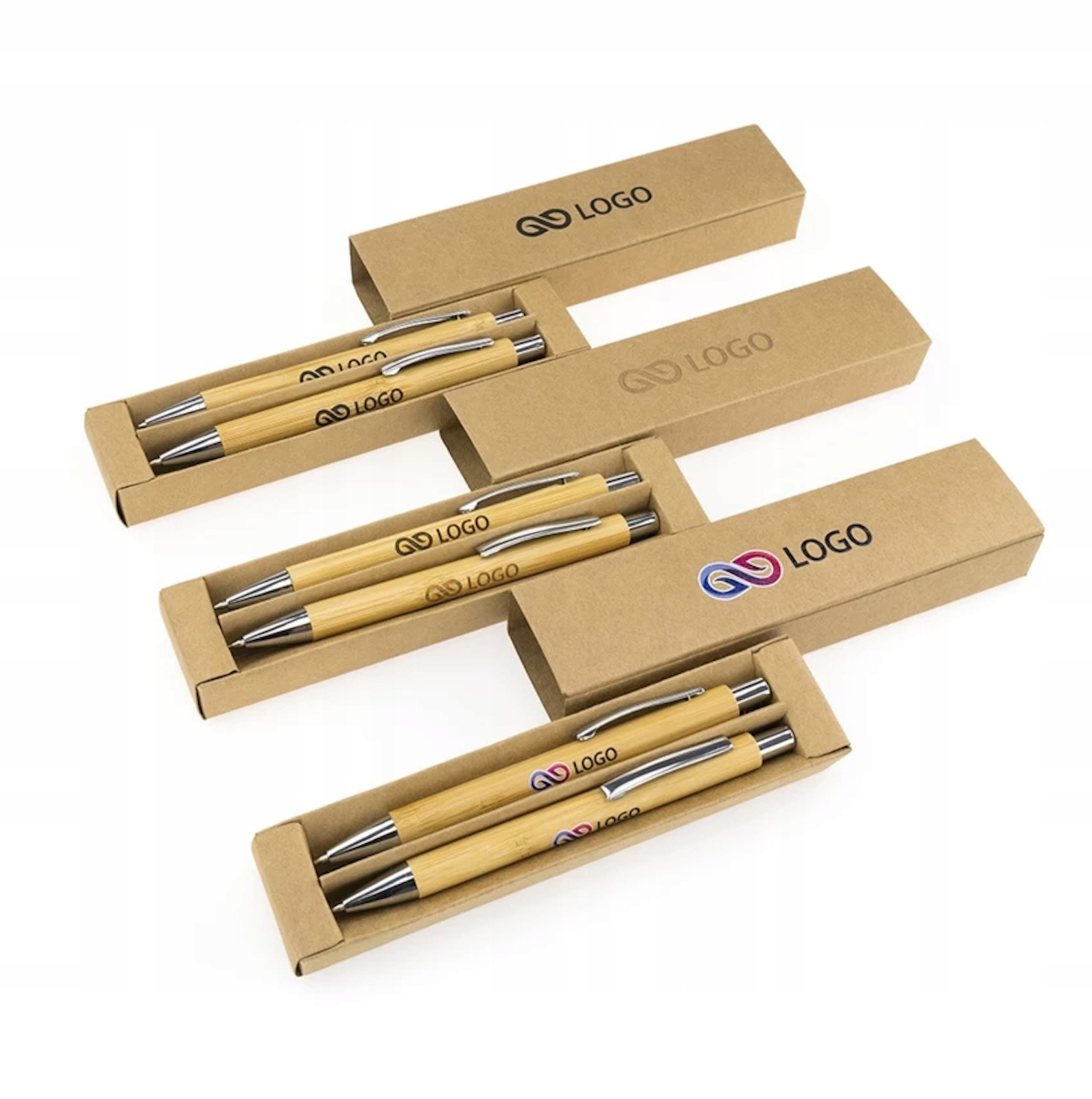 Komplet piśmienniczy, składający się z ołówka mechanicznego i długopisu, które świetnie nadają się jako upominek dla klienta. Wykonane z plastiku imitującego drewno tworzą wizerunek wysokiej jakości przedmiotu klasy premium. Wszystko zamknięte jest w estetycznym opakowaniu z tektury. Na zestaw możemy nanieść swój własny wzór - podziękowania, logo, czy nazwę firmy.