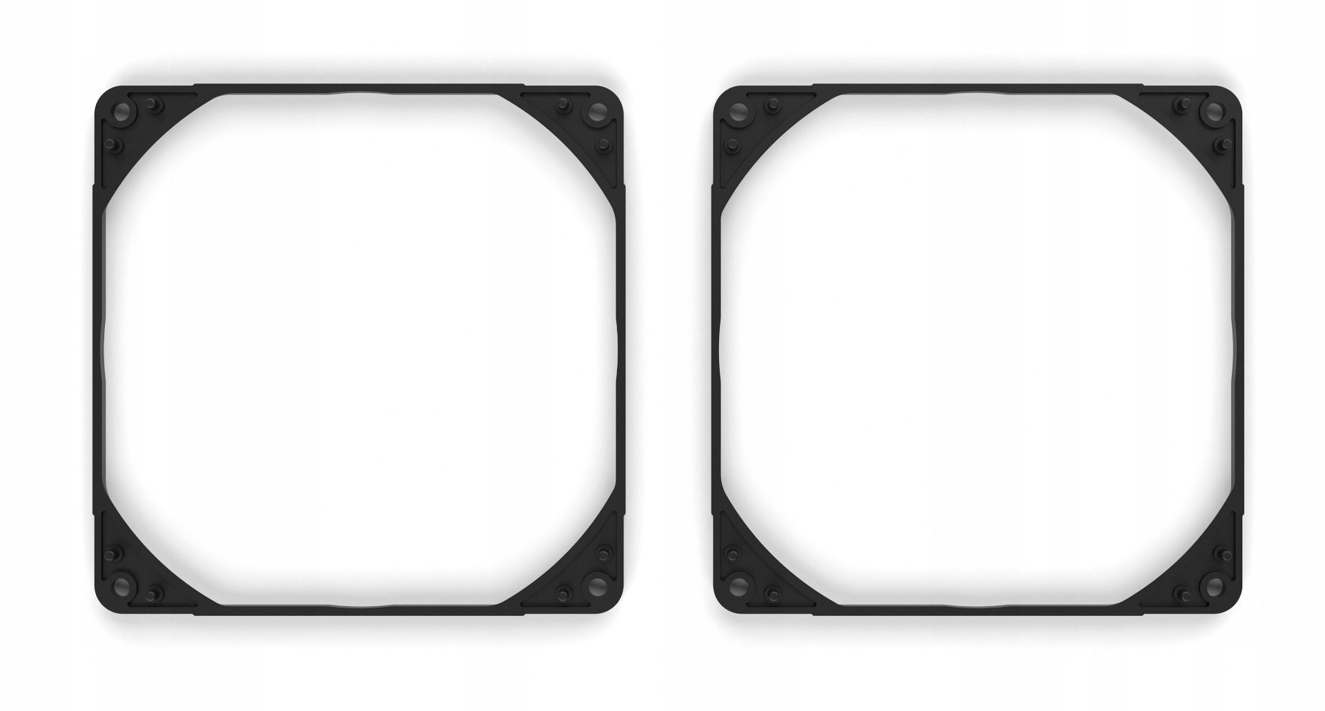 NA-IS1-14 Sx2 to zestaw dwóch ramek dystansowych po stronie wlotowej o grubości 5 mm do wentylatorów Noctua 140x25 mm, które mogą pomóc poprawić zarówno akustykę, jak i wydajność w zastosowaniach typu ssącego lub ciągnącego, w których wentylator zasysa powietrze przez przeszkody, takie jak kratki, płyty perforowane, panele siatkowe, filtry czy radiatory. Odsuwając wentylator od przeszkody, element dystansowy wlotu NA-IS1 zmniejsza turbulencje napływu, co może nie tylko poprawić przepływ powietrza, ale także znacznie obniżyć ogólny poziom hałasu i sprawić, że dźwięk wentylatora będzie przyjemniejszy dla ucha. Wariant chromax.black idealnie pasuje do fanów linii black chromax lub industrialPPC.