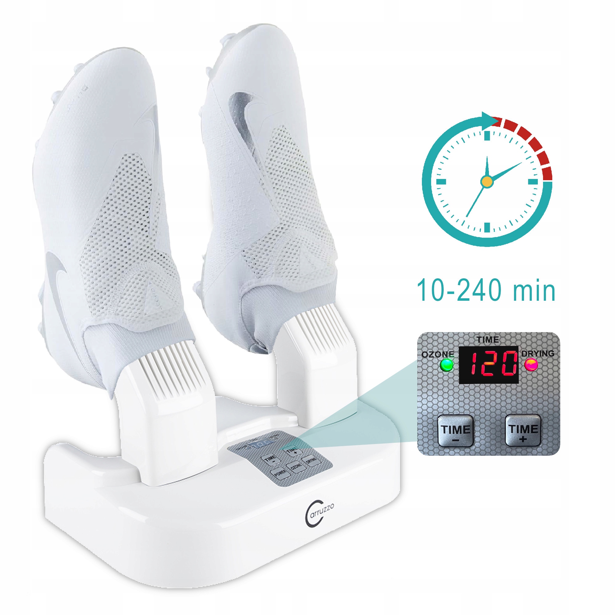 Сушилка имеет возможность Программирование времени работы в зависимости от степени намокания обуви. Можно установить от 10 до 240 минут, по истечении установленного времени устройство автоматически выключится.
